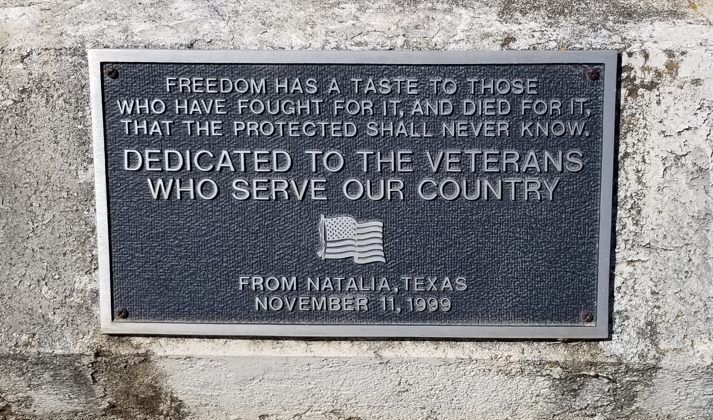 NATALIA VETERANS MEMORIAL FLAGPOLE PLAQUE