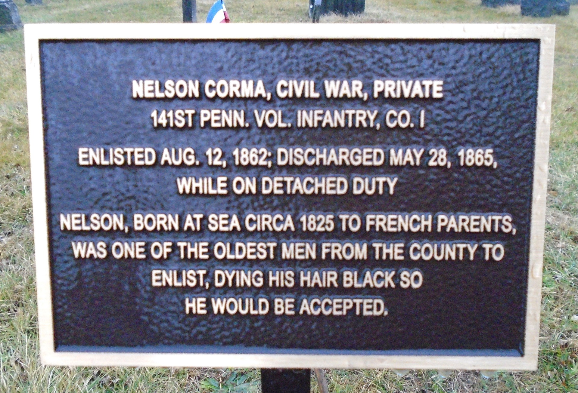 NELSON CORMA, CIVIL WAR, PRIVATE WAR MEMORIAL PLAQUE