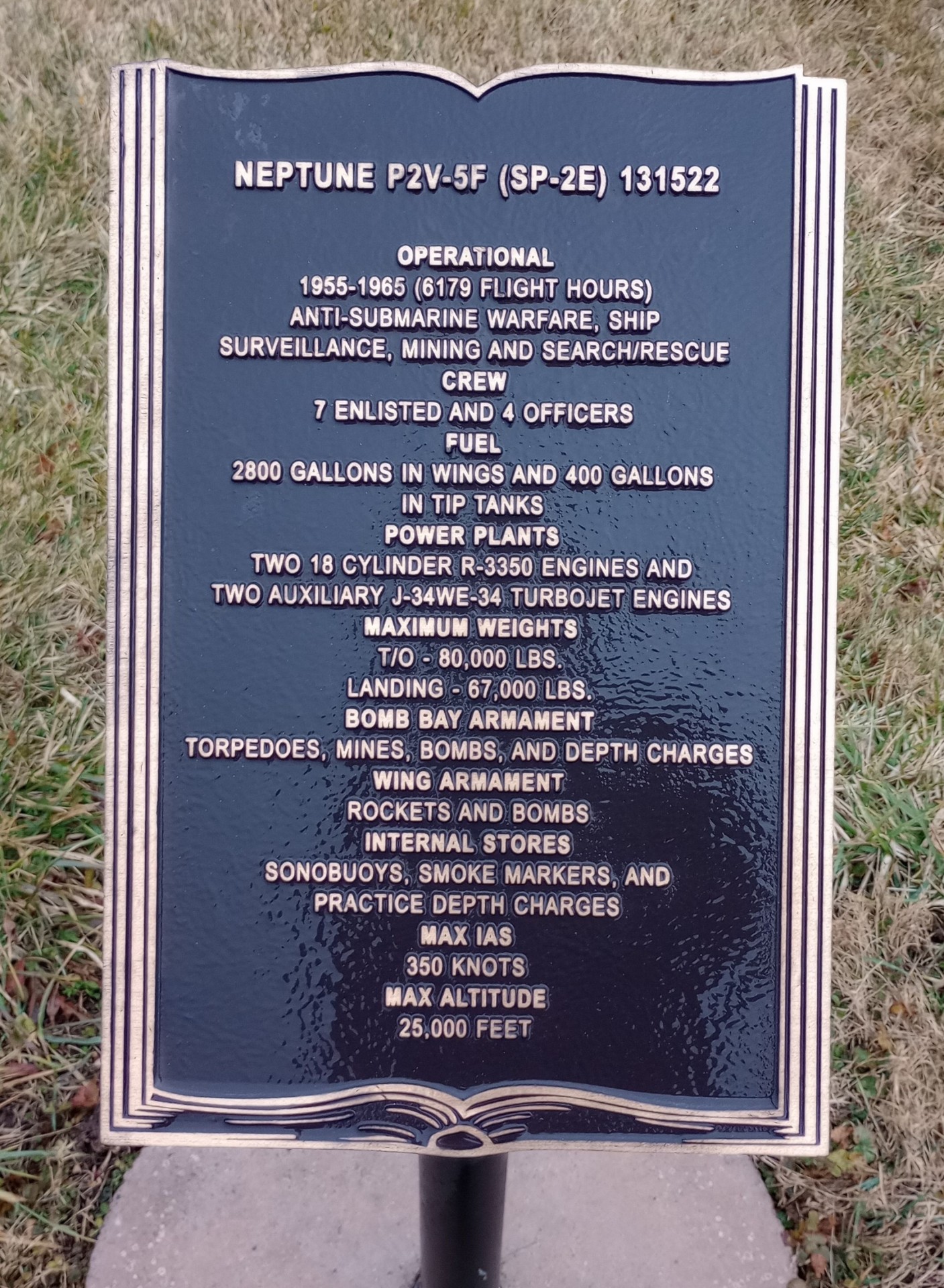 NEPTUNE P2V-5F MEMORIAL AIRCRAFT PLAQUE