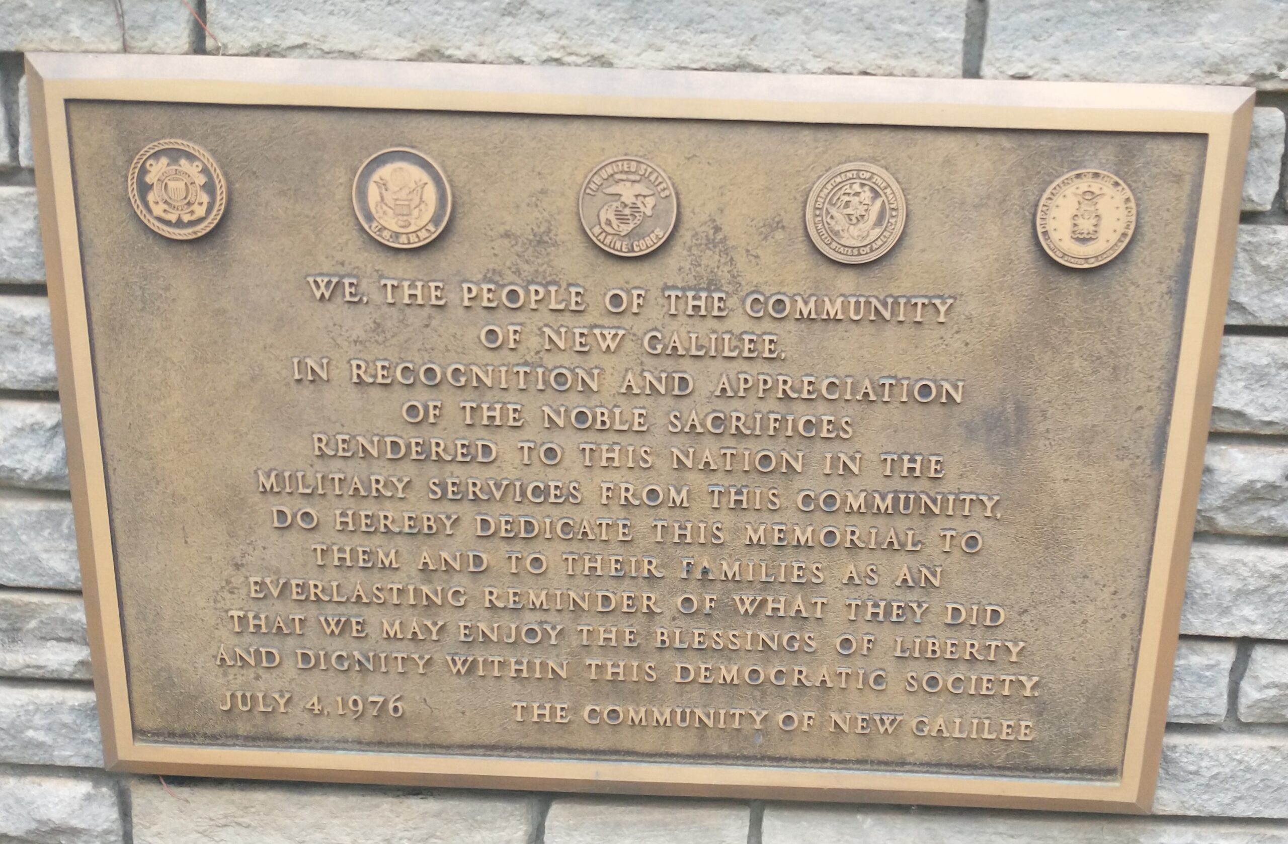 NEW GALILEE VETERANS MEMORIAL PLAQUE