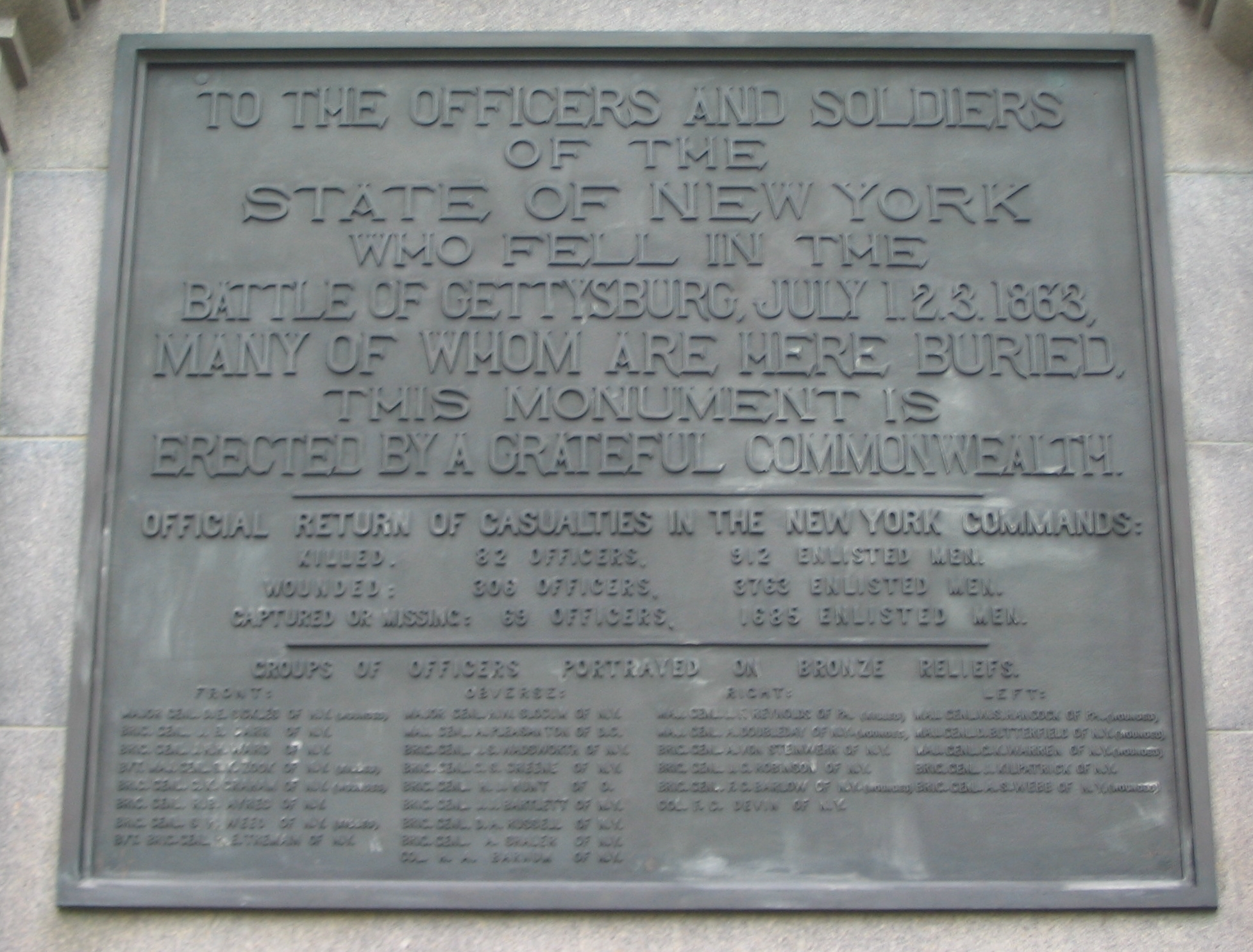 NEW YORK STATE GETTYSBURG WAR MEMORIAL PLAQUE A