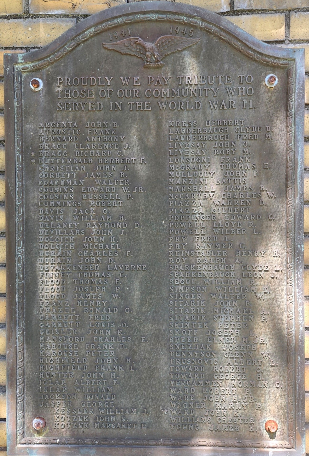Type of Memorial: War Memorial Honor Roll Plaques, Panels and Stones