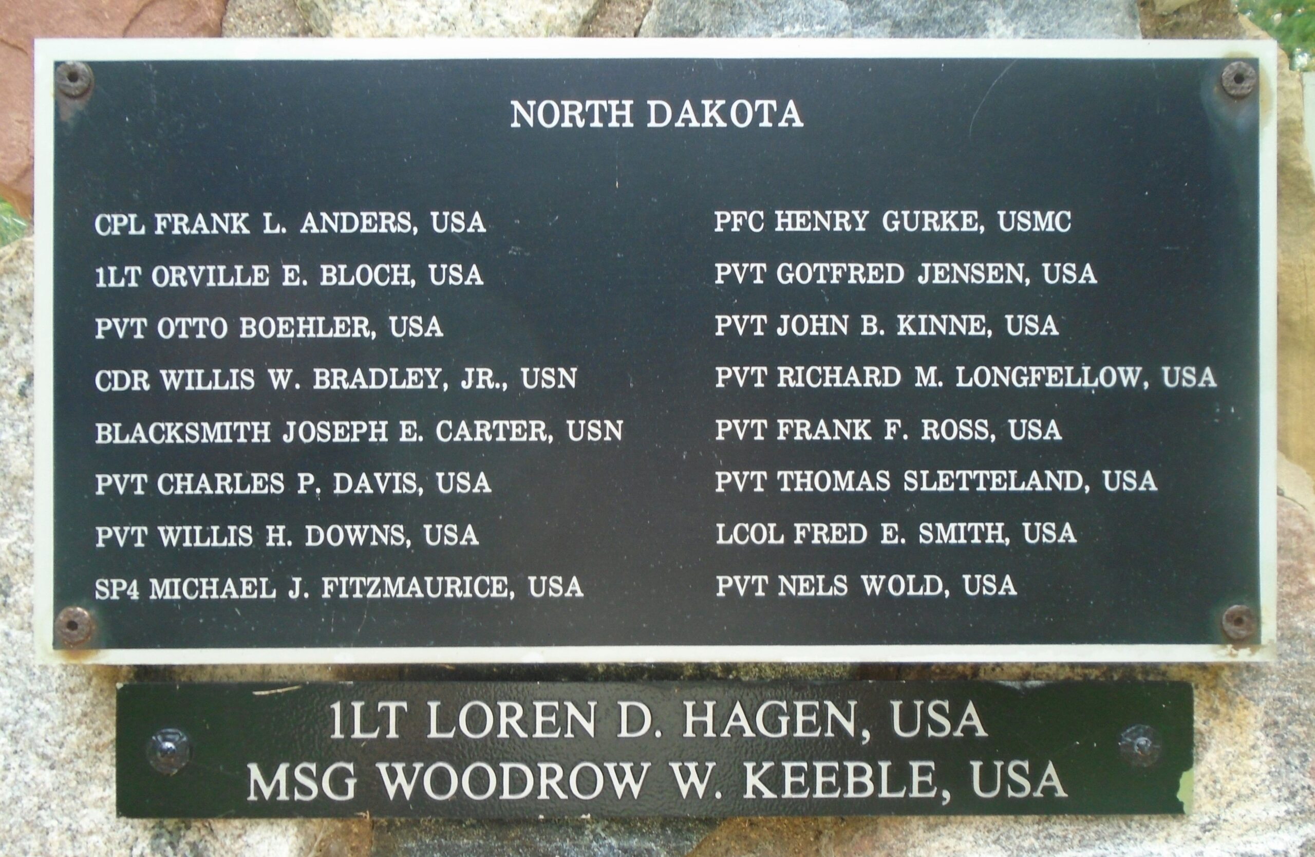SEE ALSO-NORTH DAKOTA MEDAL OF HONOR RECIPIENTS WAR MEMORIAL