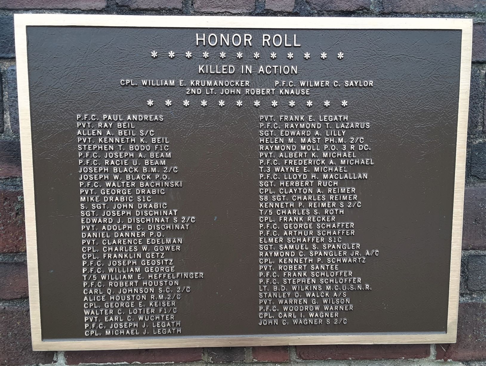 NORTHAMPTON WORLD WAR II HONOR ROLL MEMORIAL PLAQUE