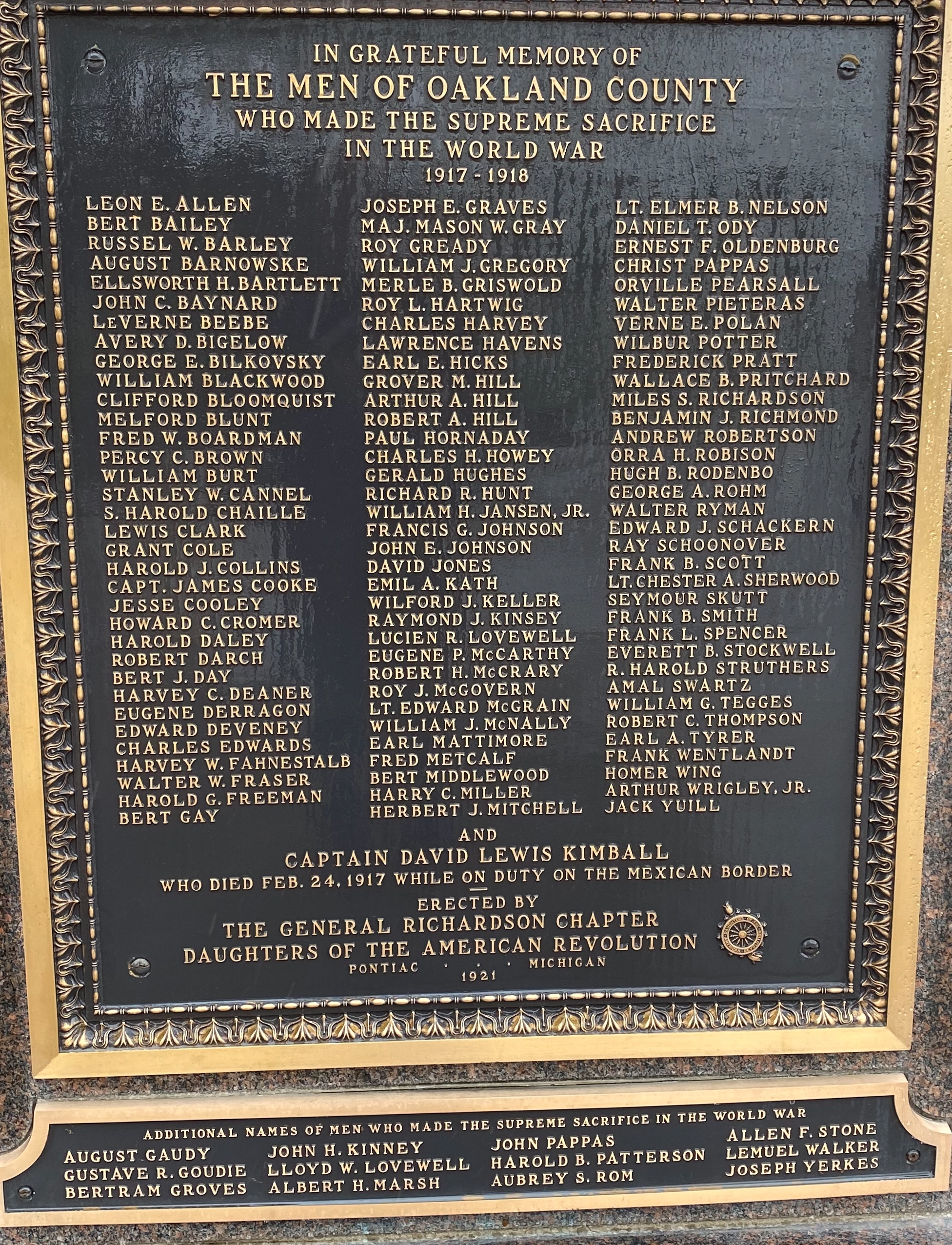 OAKLAND COUNTY WORLD WAR MEMORIAL PLAQUE