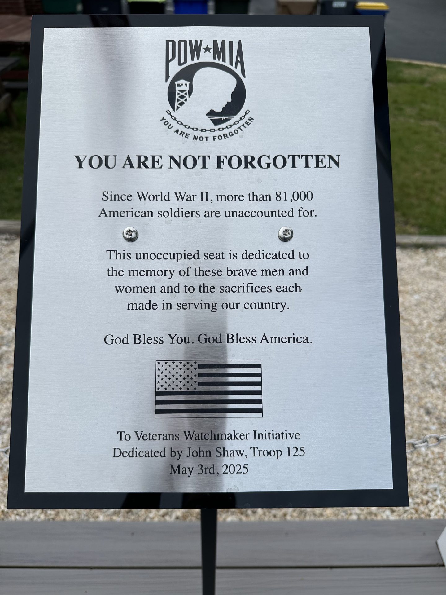 ODESSA YOU ARE NOT FORGOTTEN WAR MEMORIAL CHAIR PLAQUE