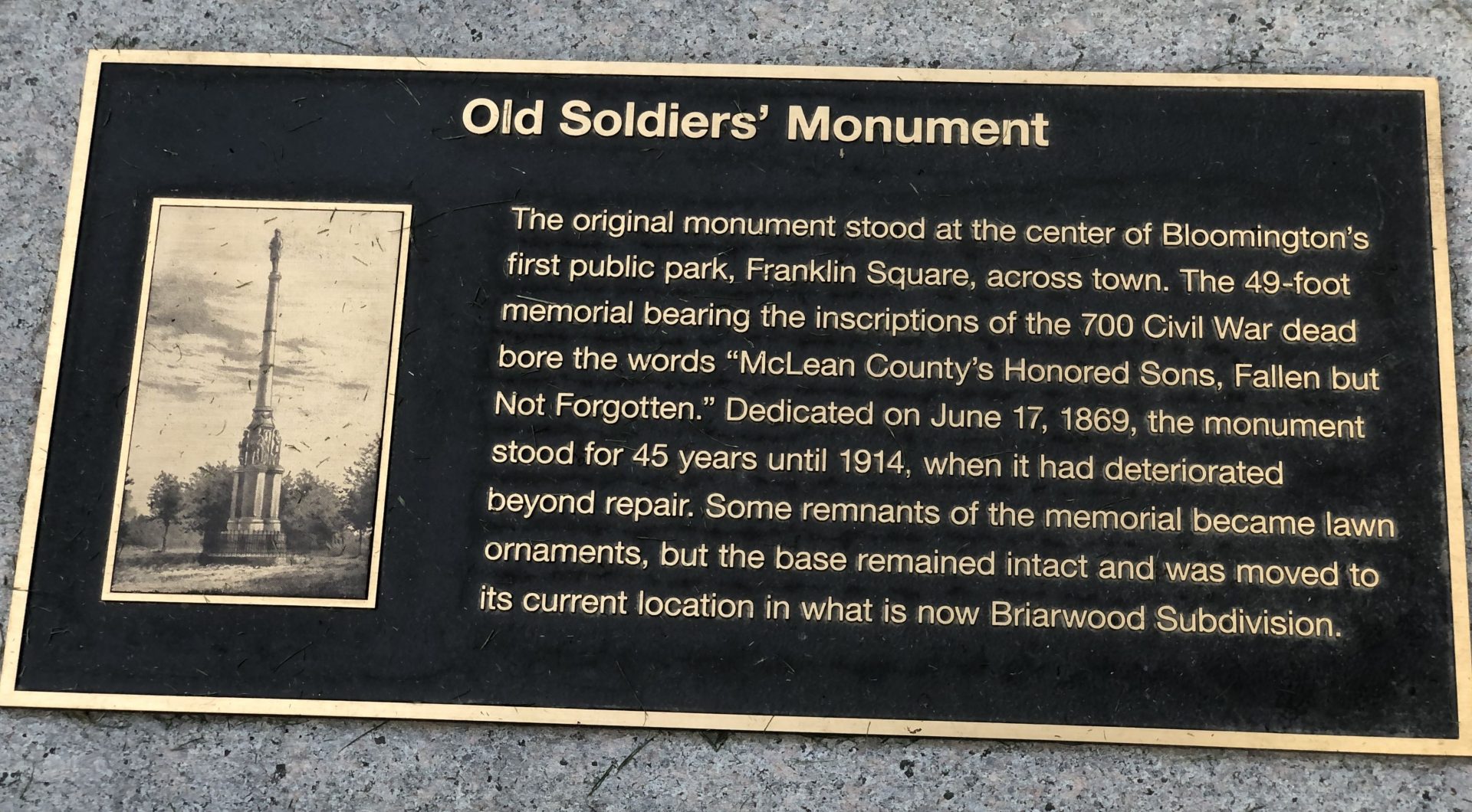 OLD SOLDIERS’ MONUMENT PLAQUE