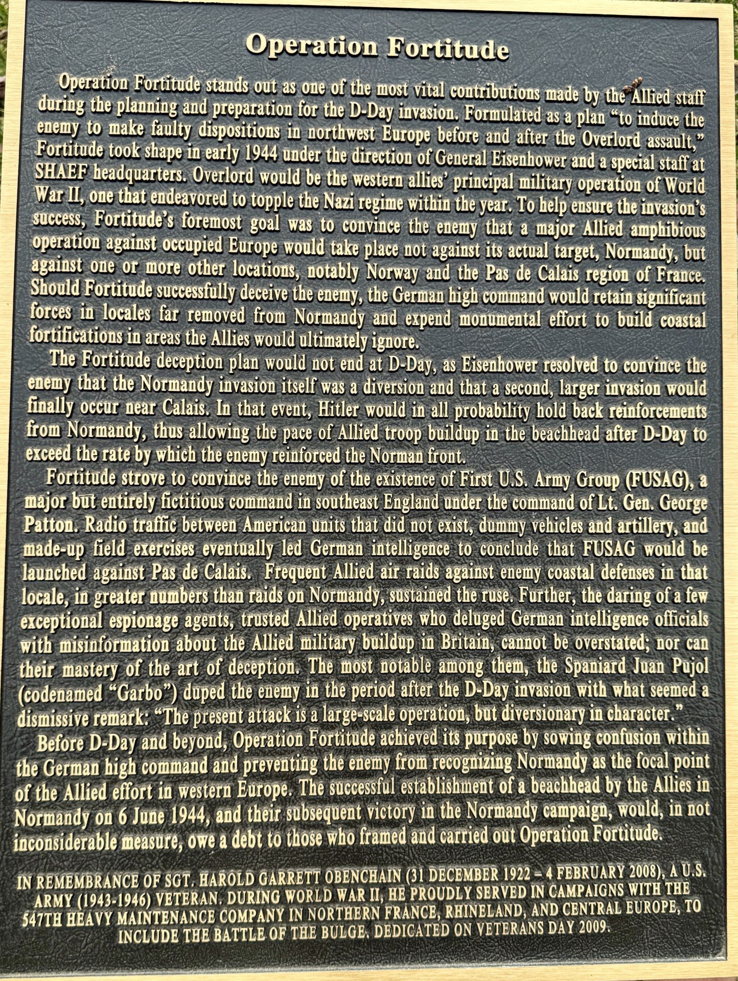 OPERATION FORTITUDE WAR MEMORIAL PLAQUE