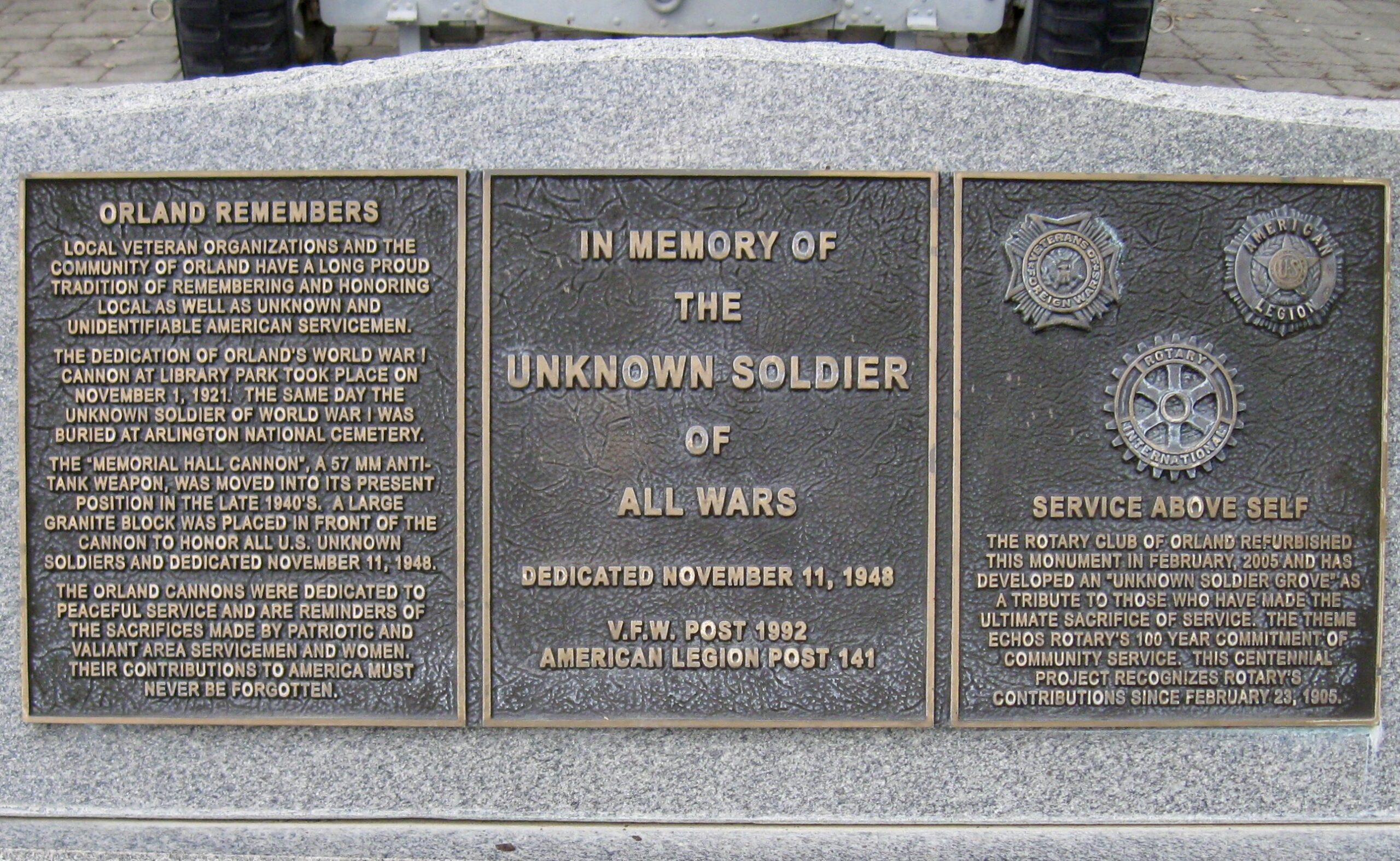 ORLAND’S CANNONS WAR MEMORIAL THREE PLAQUES