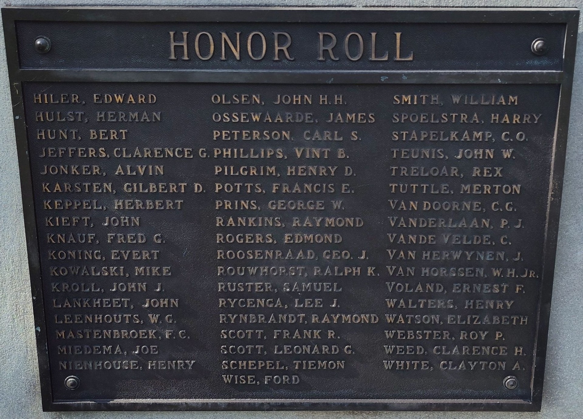 Type of Memorial: War Memorial Honor Roll Plaques, Panels and Stones
