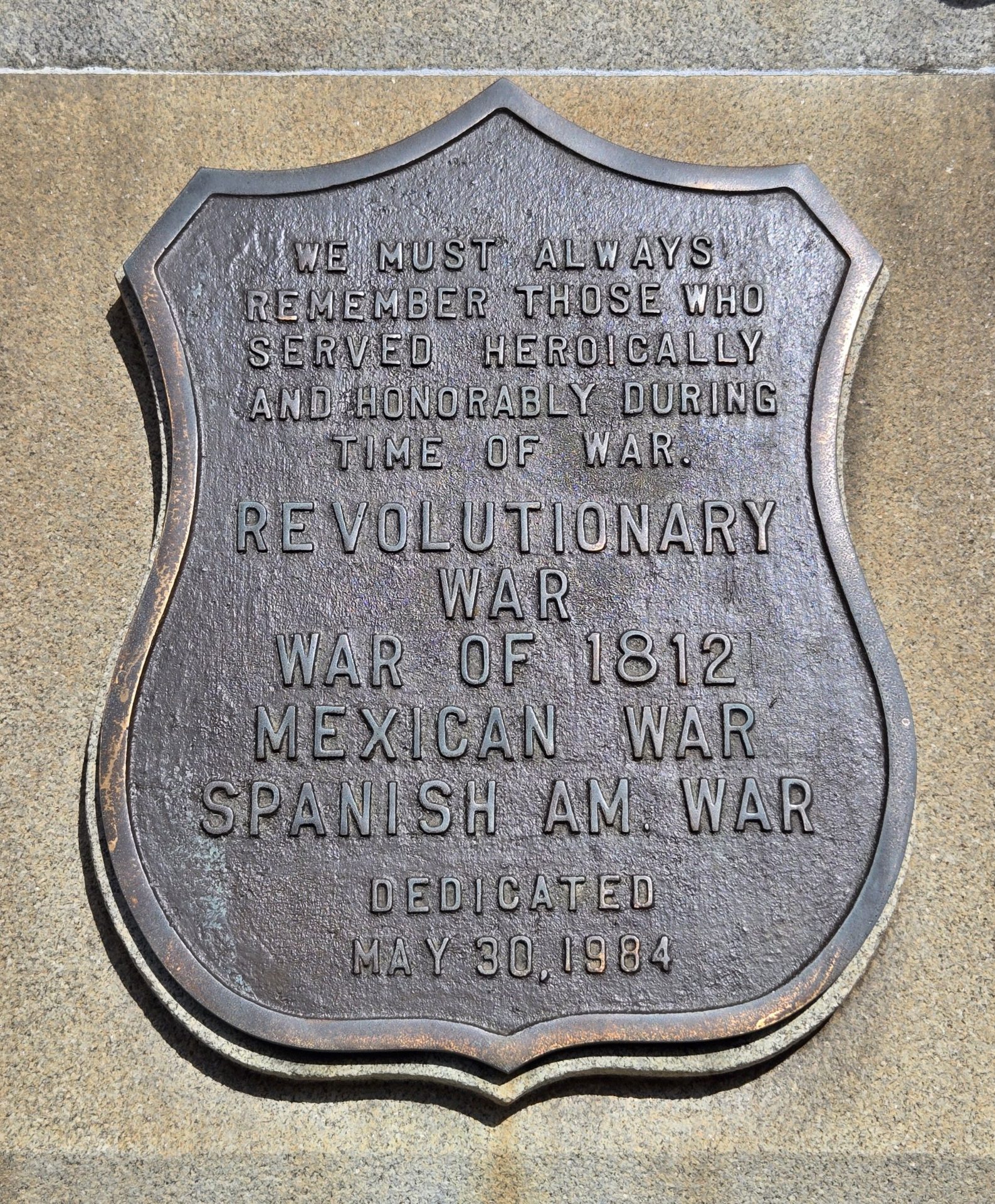 Wars Commemorated: REVOLUTIONARY WAR, WAR OF 1812, MEXICAN WAR AND SPANISH AMERICAN WAR