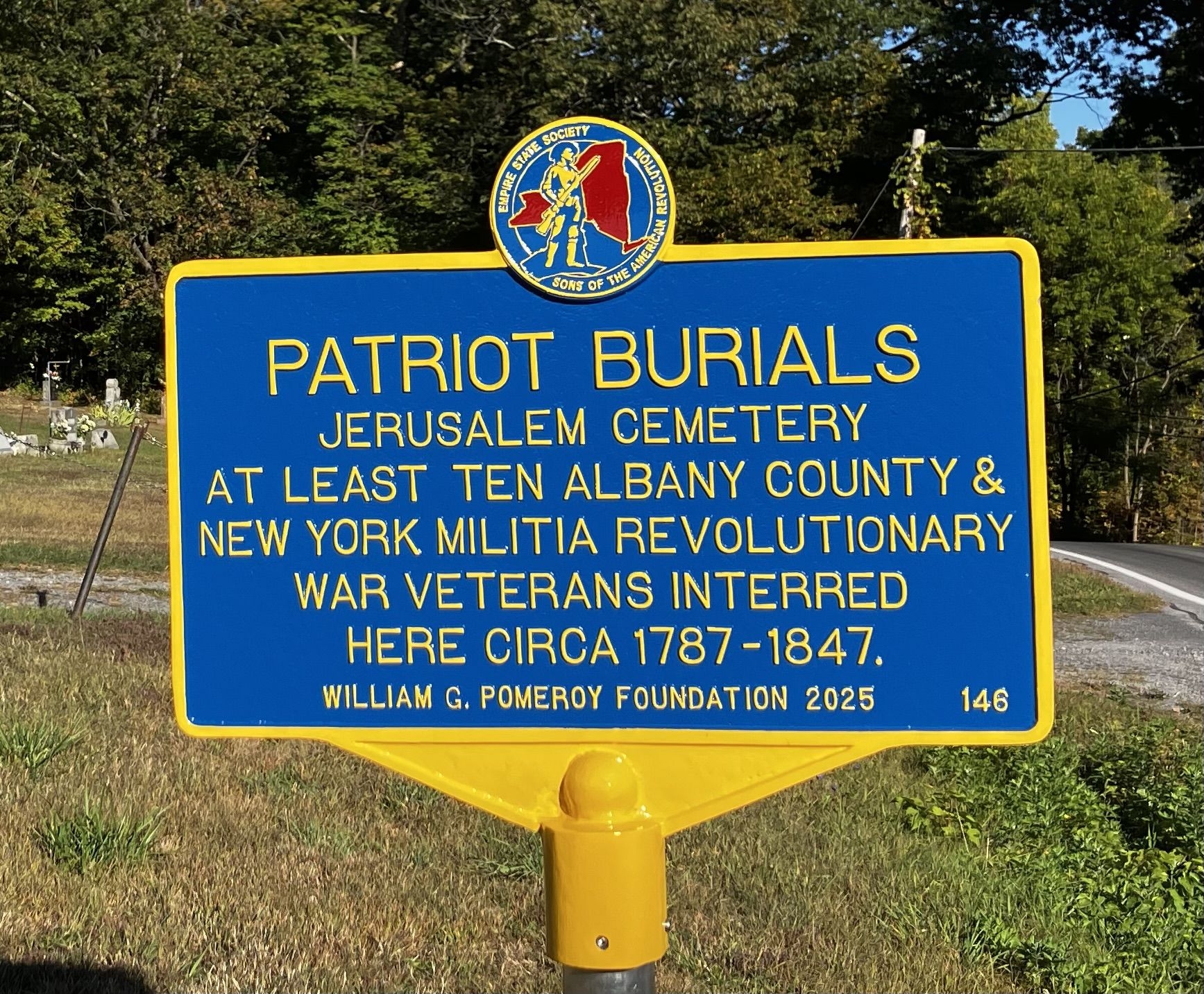 PATRIOT BURIALS JERUSALEM CEMETERY REVOLUTIONARY WAR MEMORIAL MARKER