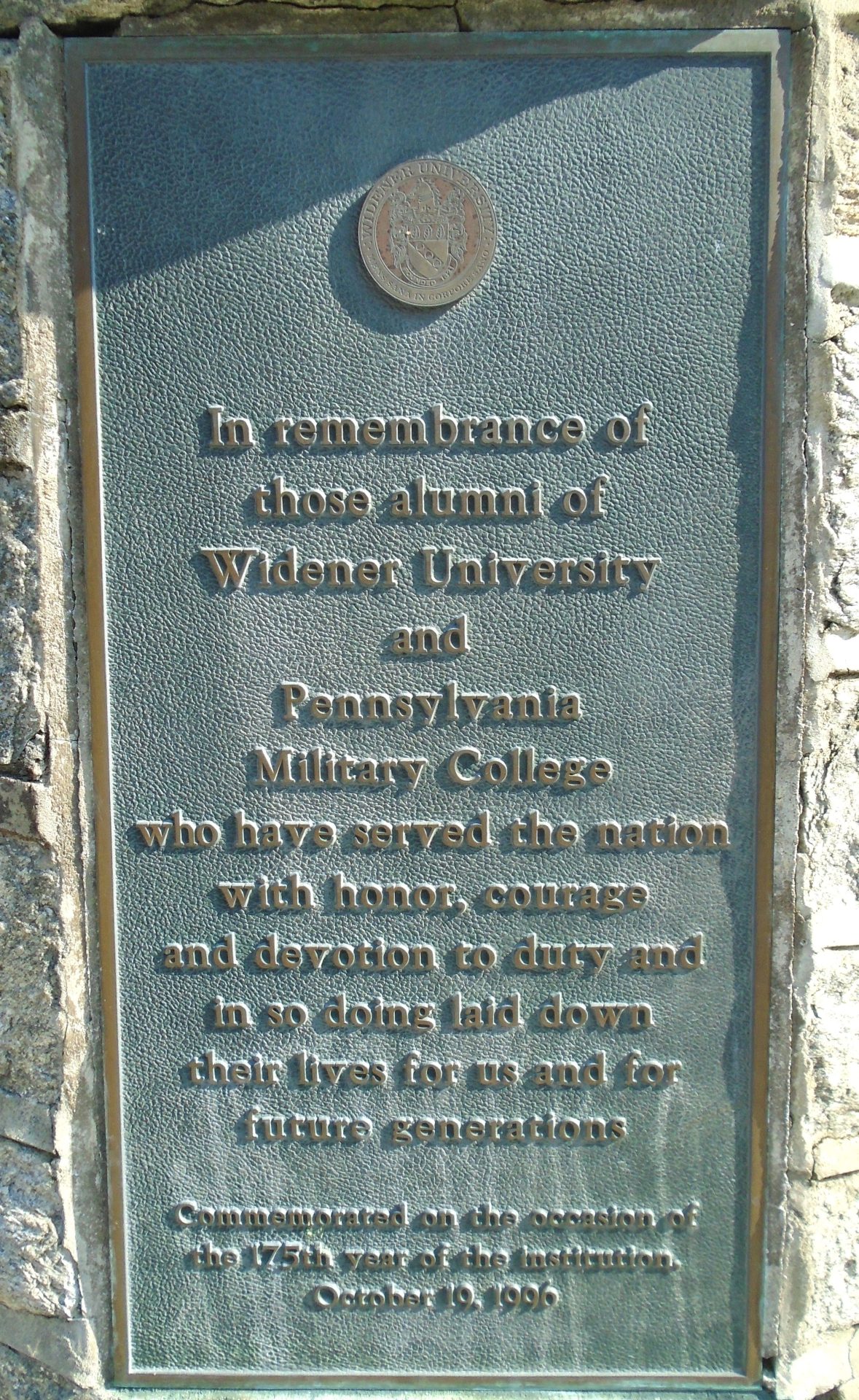 PENNSYLVANIA MILITARY COLLEGE WIDENER UNIVERSITY VETERANS MEMORIAL FLAGPOLE PLAQUE A