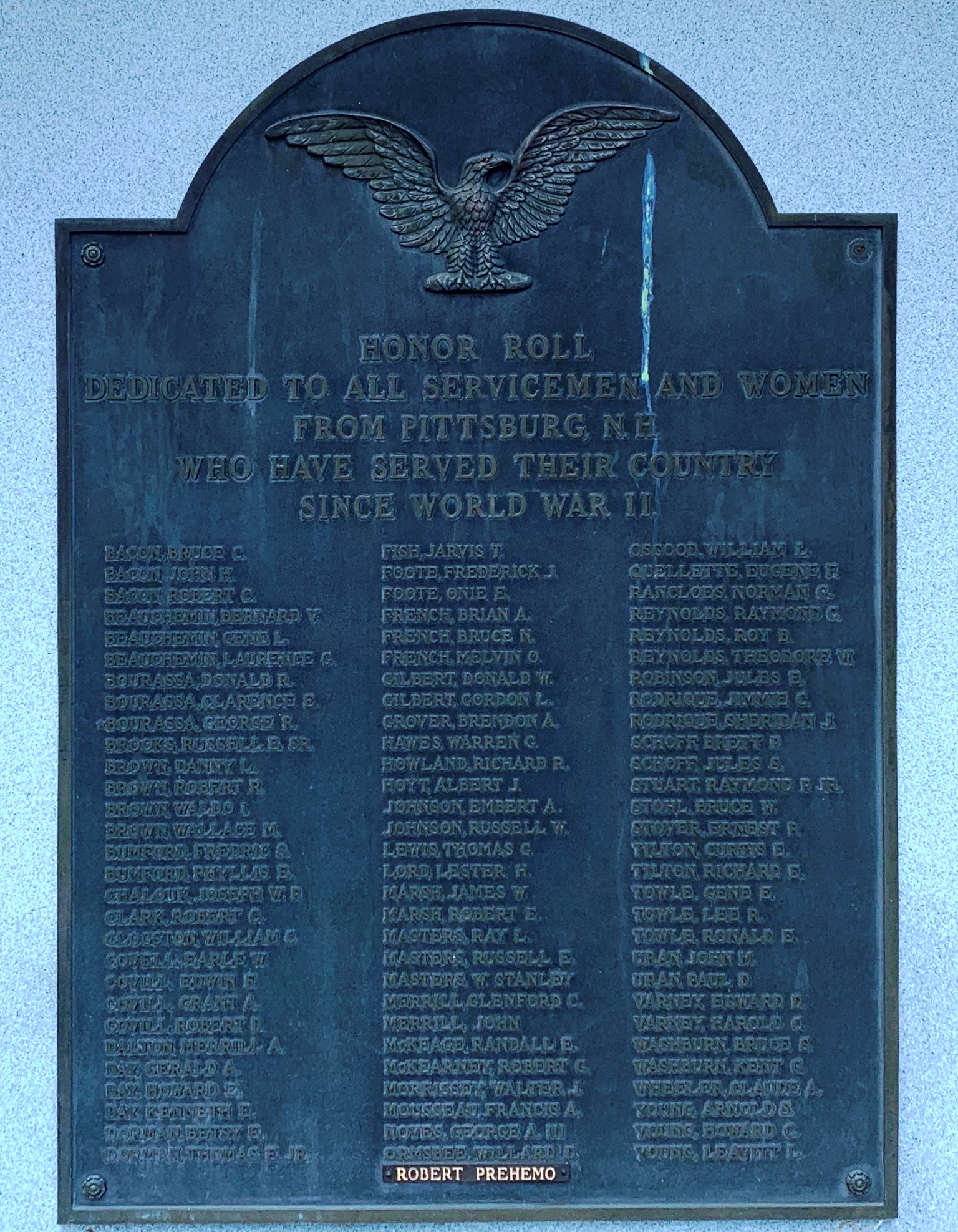 PITTSBURG, NH VETERANS SINCE WORLD WAR II MEMORIAL PLAQUE A