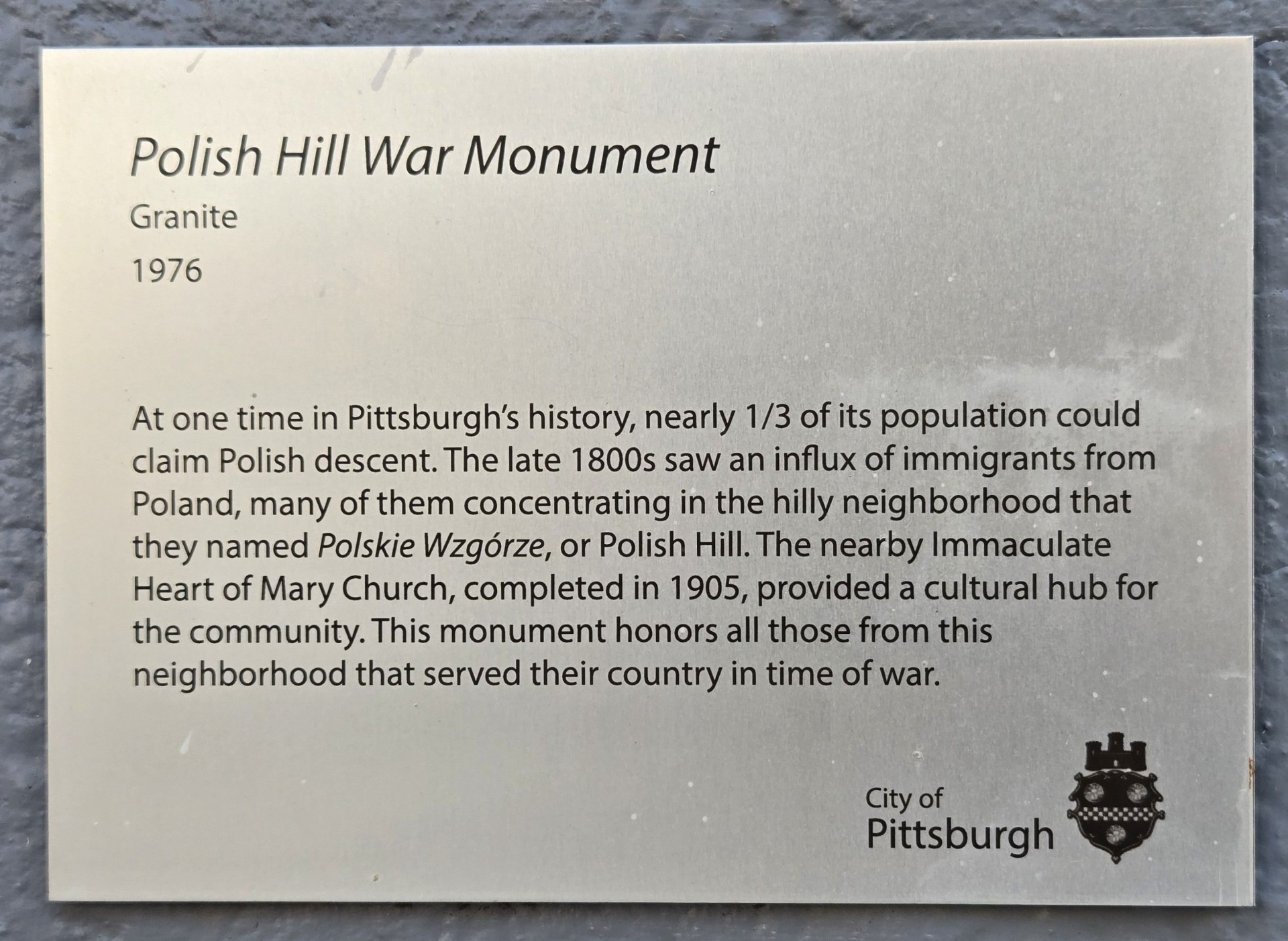 POLISH HILL WAR MONUMENT PLAQUE