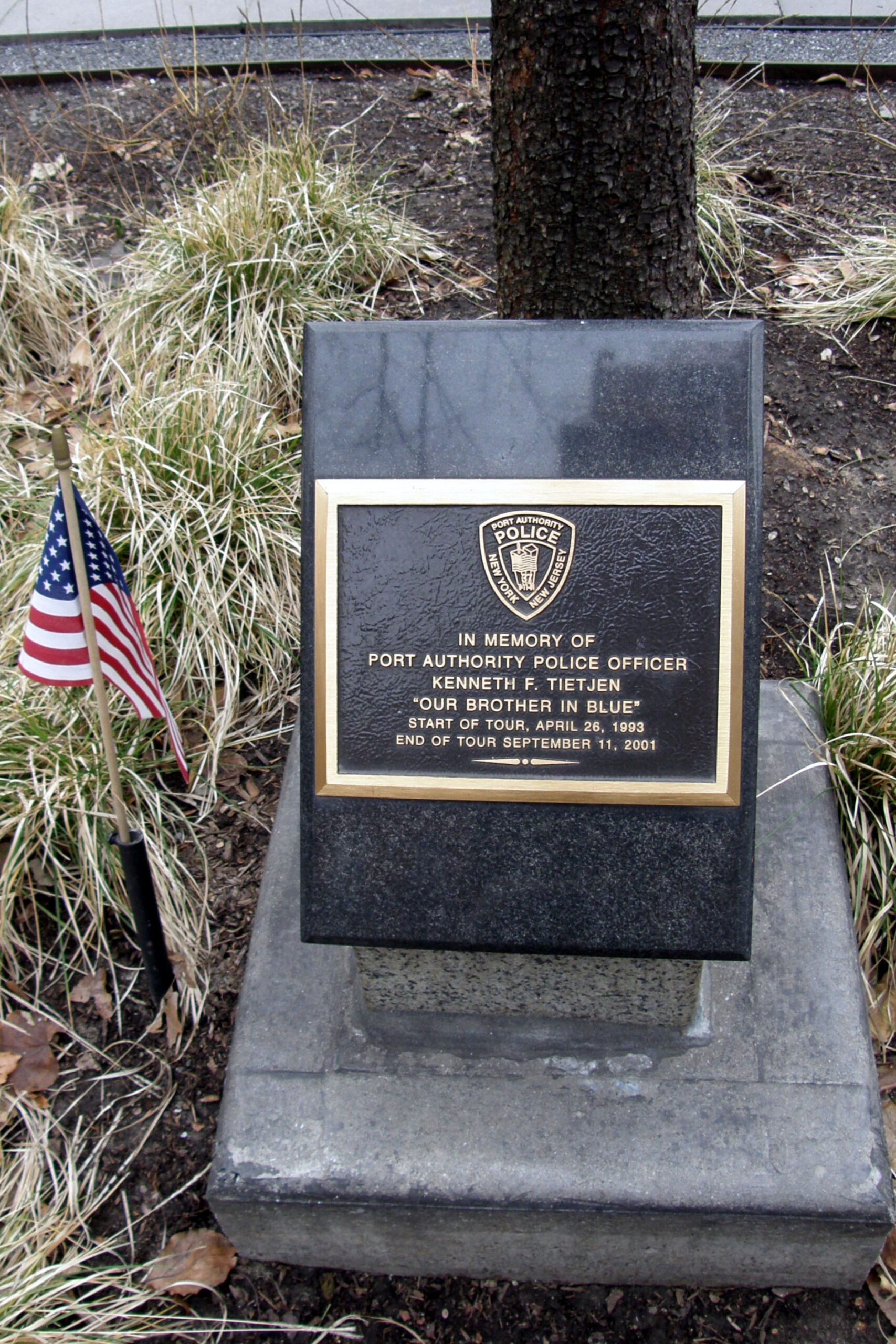 PORT AUTHORITY POLICE OFFICER KENNETH F. TIETJEN MEMORIAL TREE PLAQUE