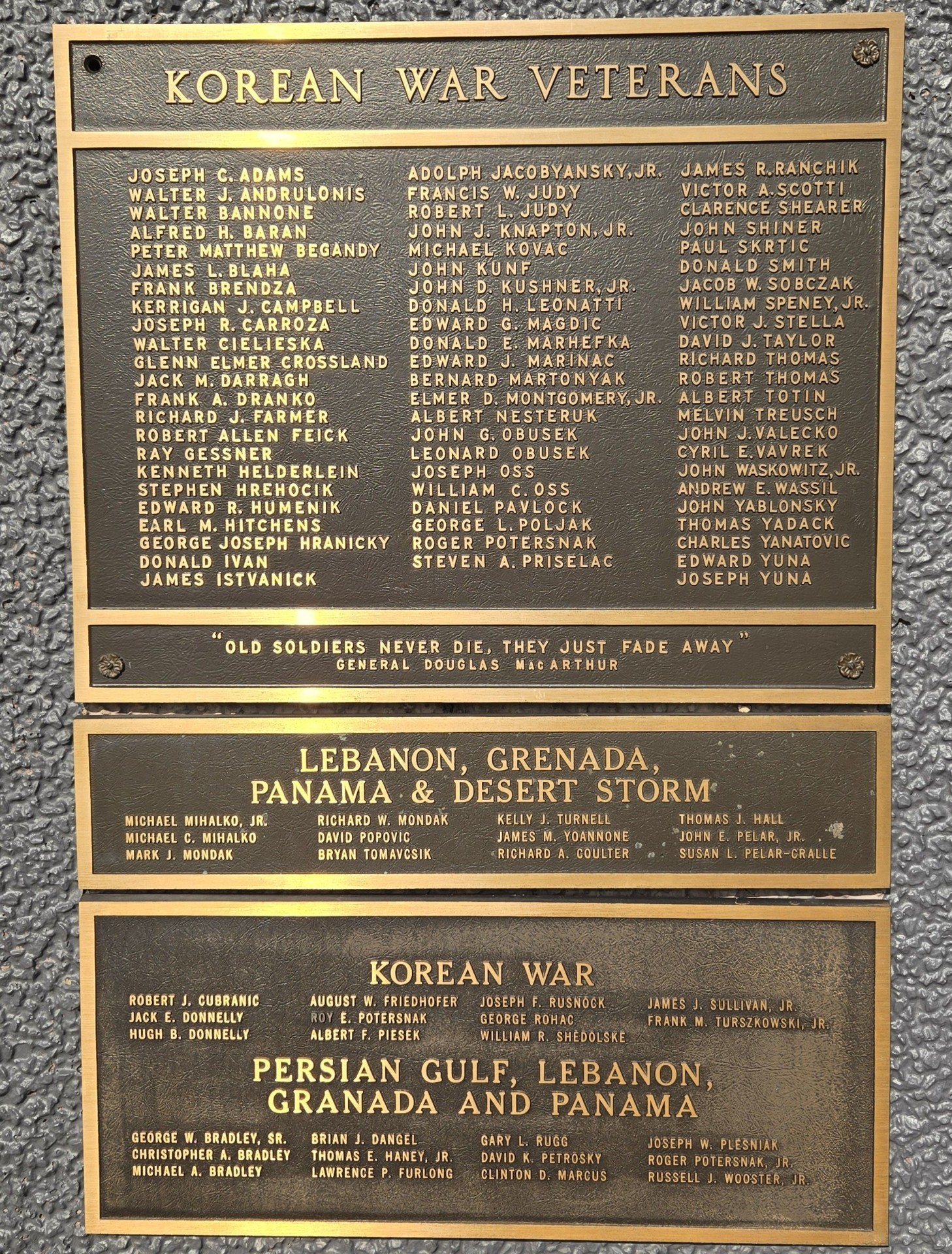 Wars Commemorated: KOREAN WAR, LEBANON, GRENADA, PANAMA, PERSIAN GULF WAR AND DESERT STORM