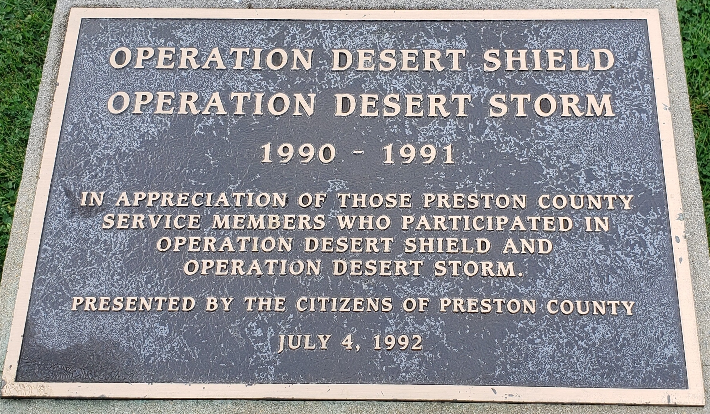 SEE ALSO-PRESTON COUNTY OPERATION DESERT SHIELD AND OPERATION DESERT STORM MEMORIAL