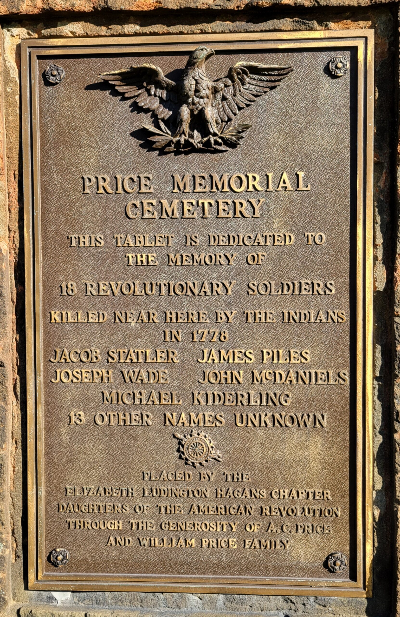 PRICE MEMORIAL CEMETERY PLAQUE