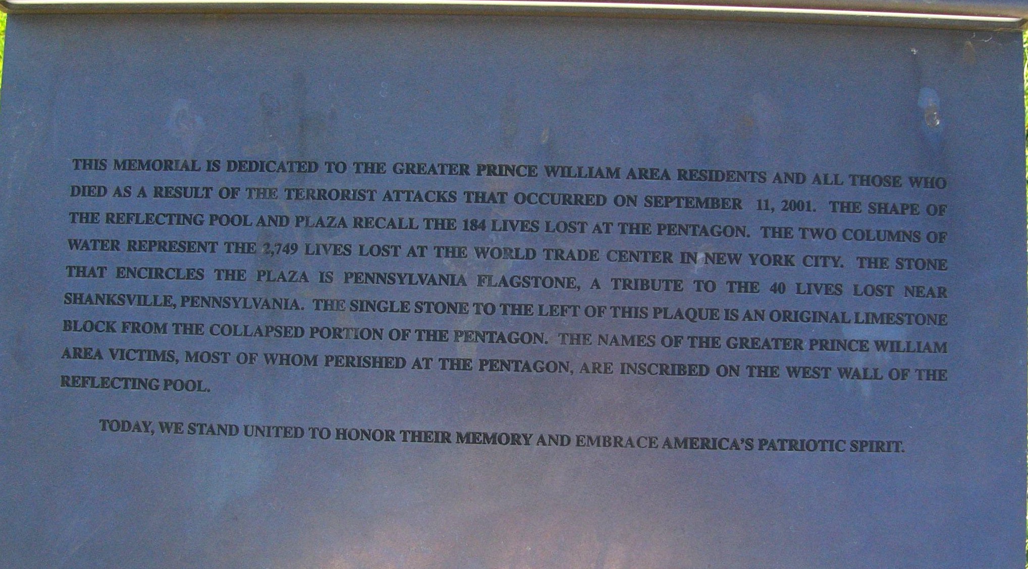 PRINCE WILLIAM COUNTY SEPTEMBER 11, 2001 MEMORIAL FOUNTAIN PLAQUE