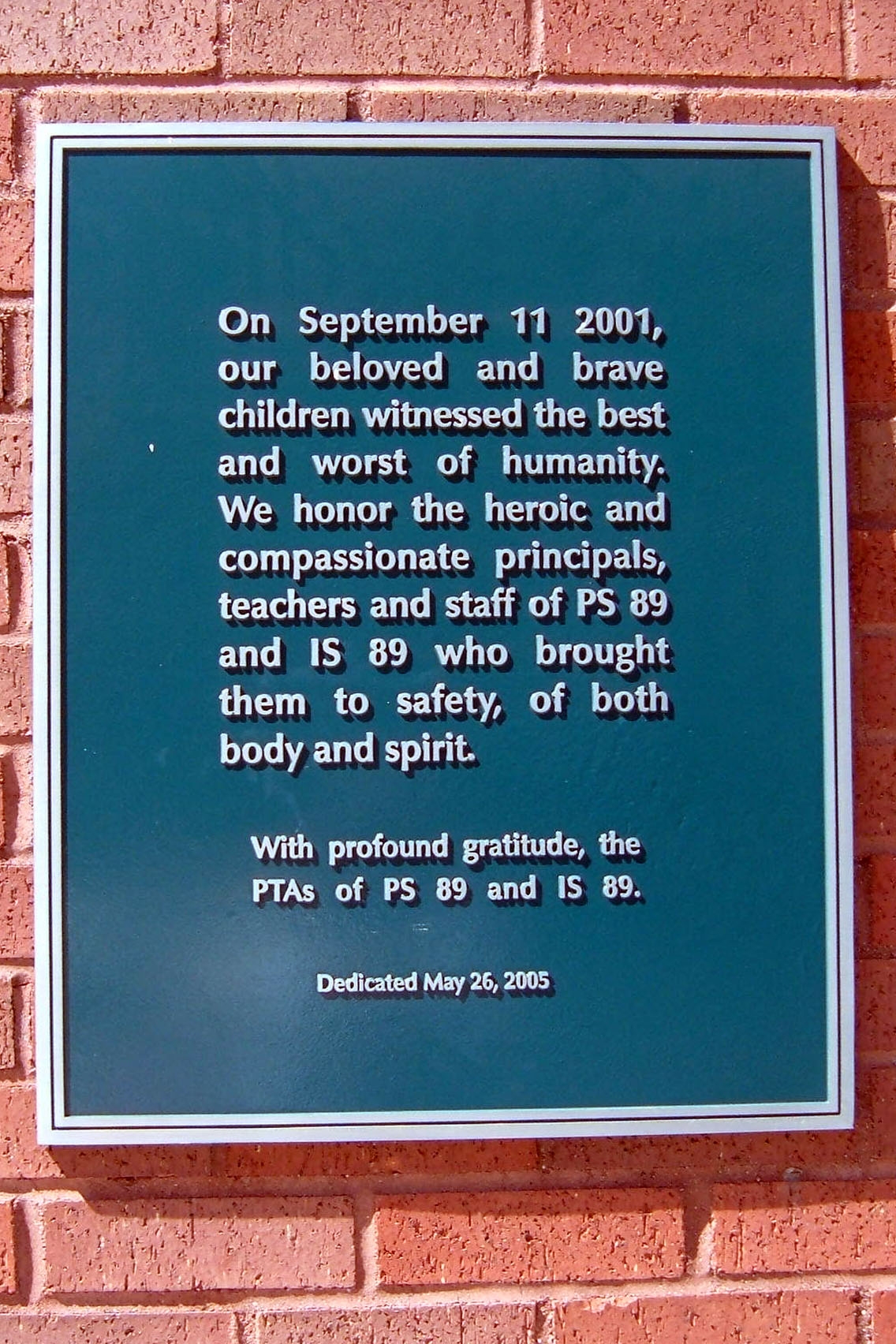 PS 89 AND IS 89 SEPTEMBER 11, 2001 MEMORIAL PLAQUE