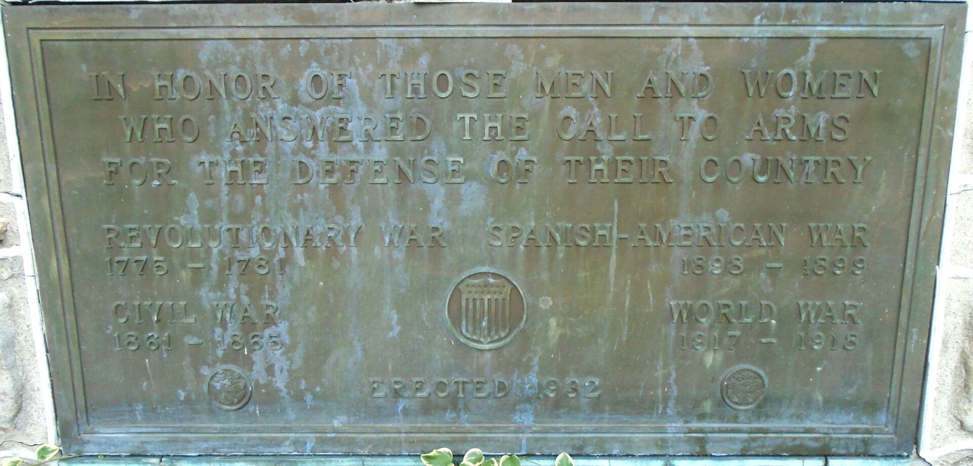 Wars Commemorated: REVOLUTIONARY WAR, CIVIL WAR, SPANISH-AMERICAN WAR AND WORLD WAR I