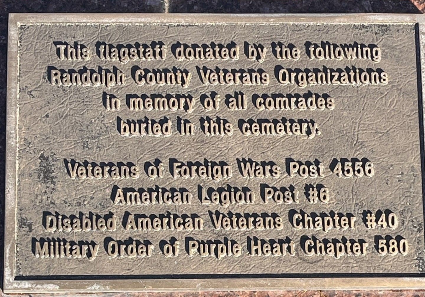 RANDOLPH COUNTY COMRADES BURIED IN THIS CEMETERY MEMORIAL PLAQUE