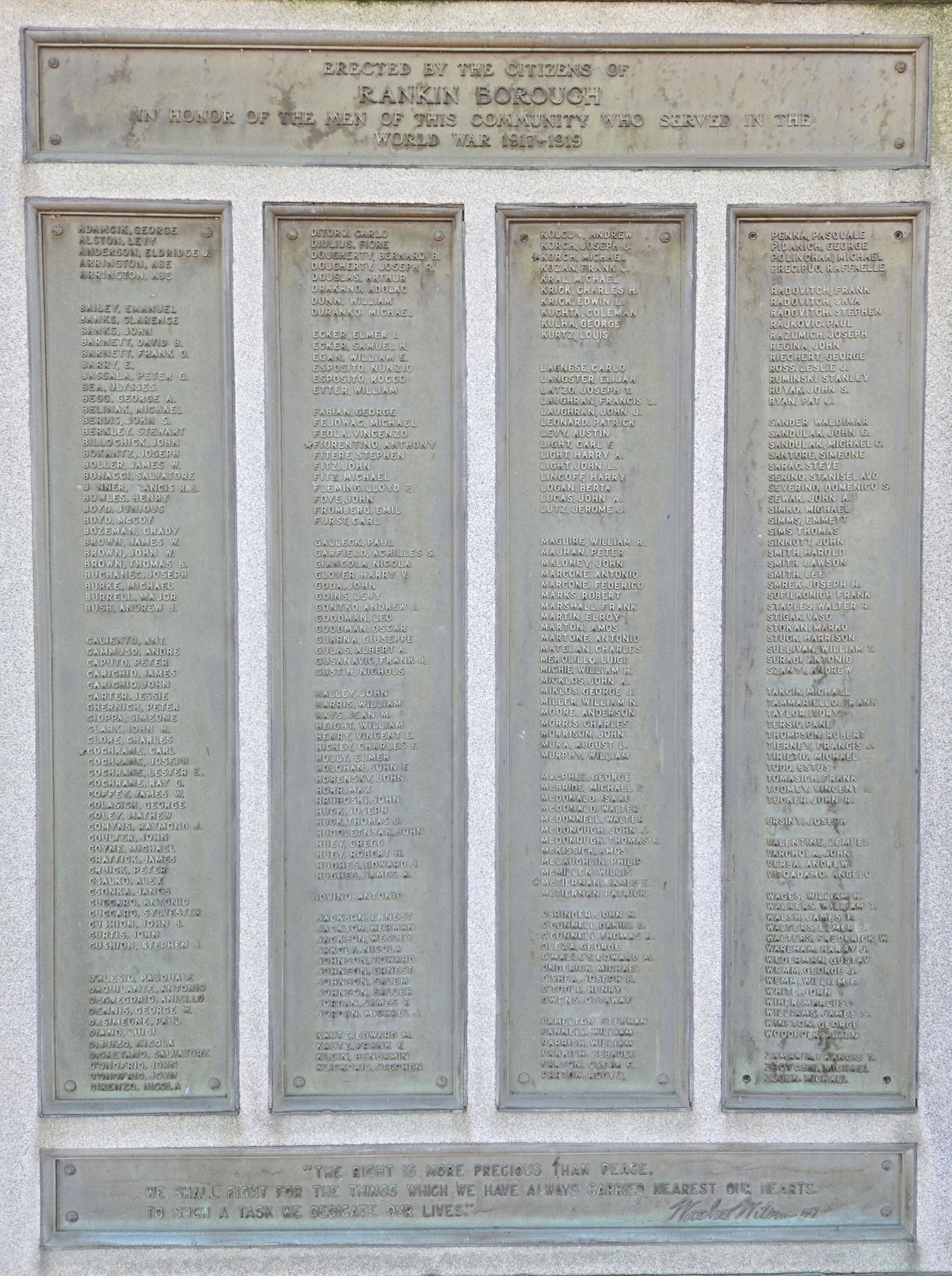 RANKIN BOROUGH WORLD WAR VETERANS MEMORIAL CLOSE-UP