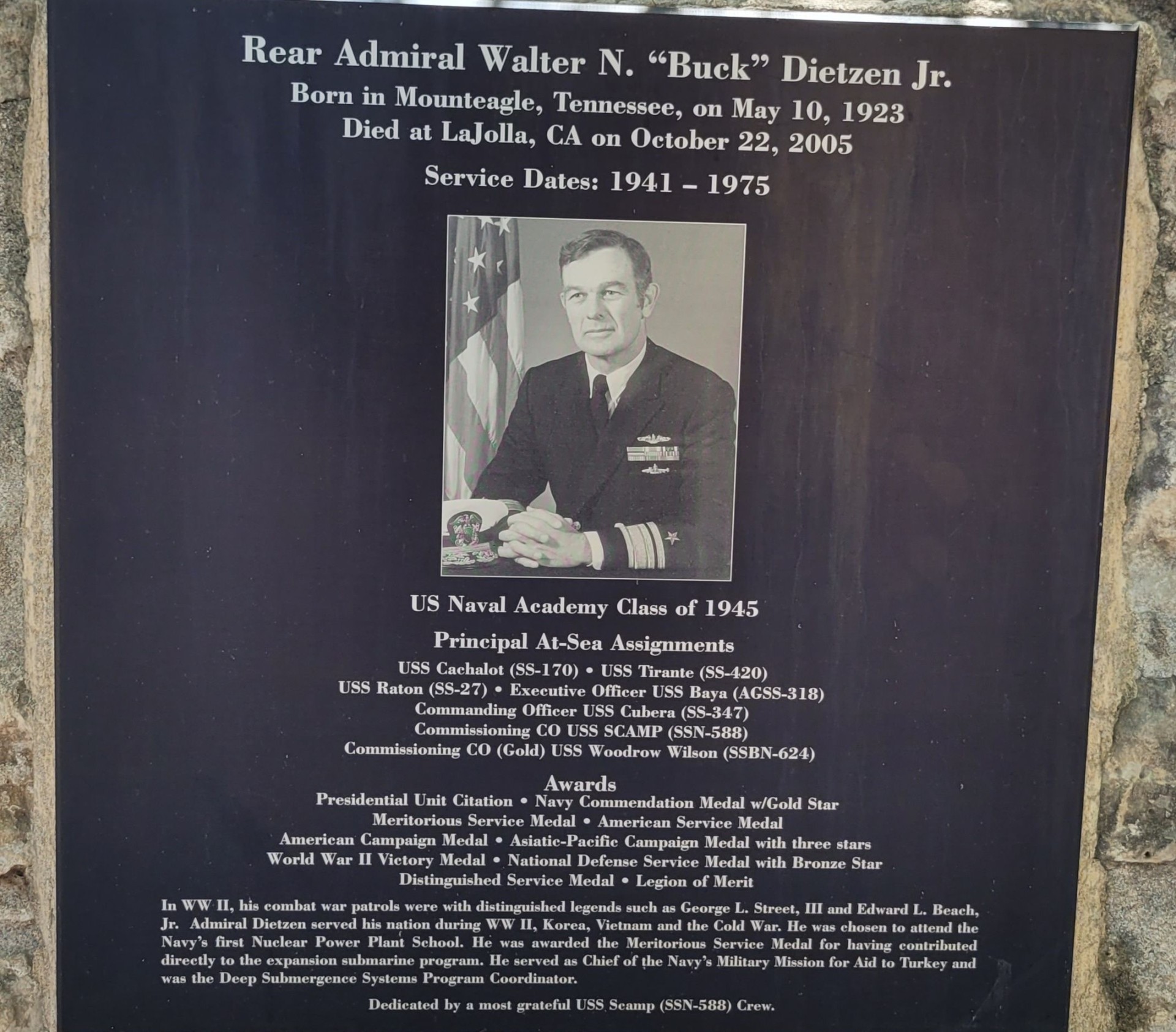 REAR ADMIRAL WALTER N. “BUCK” DIETZEN JR. WAR MEMORIAL PLAQUE
