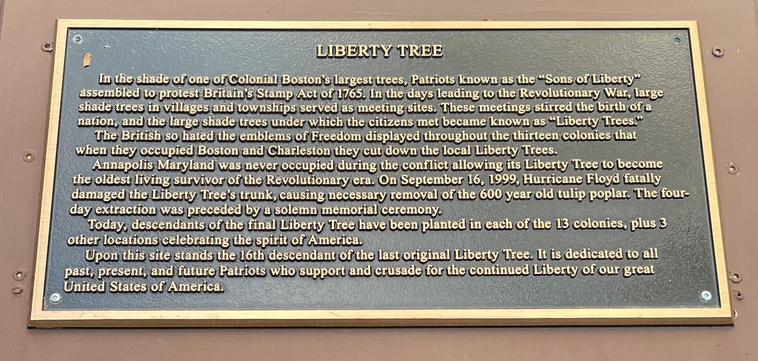 REEDS SPRING LIBERTY TREE MEMORIAL PLAQUE