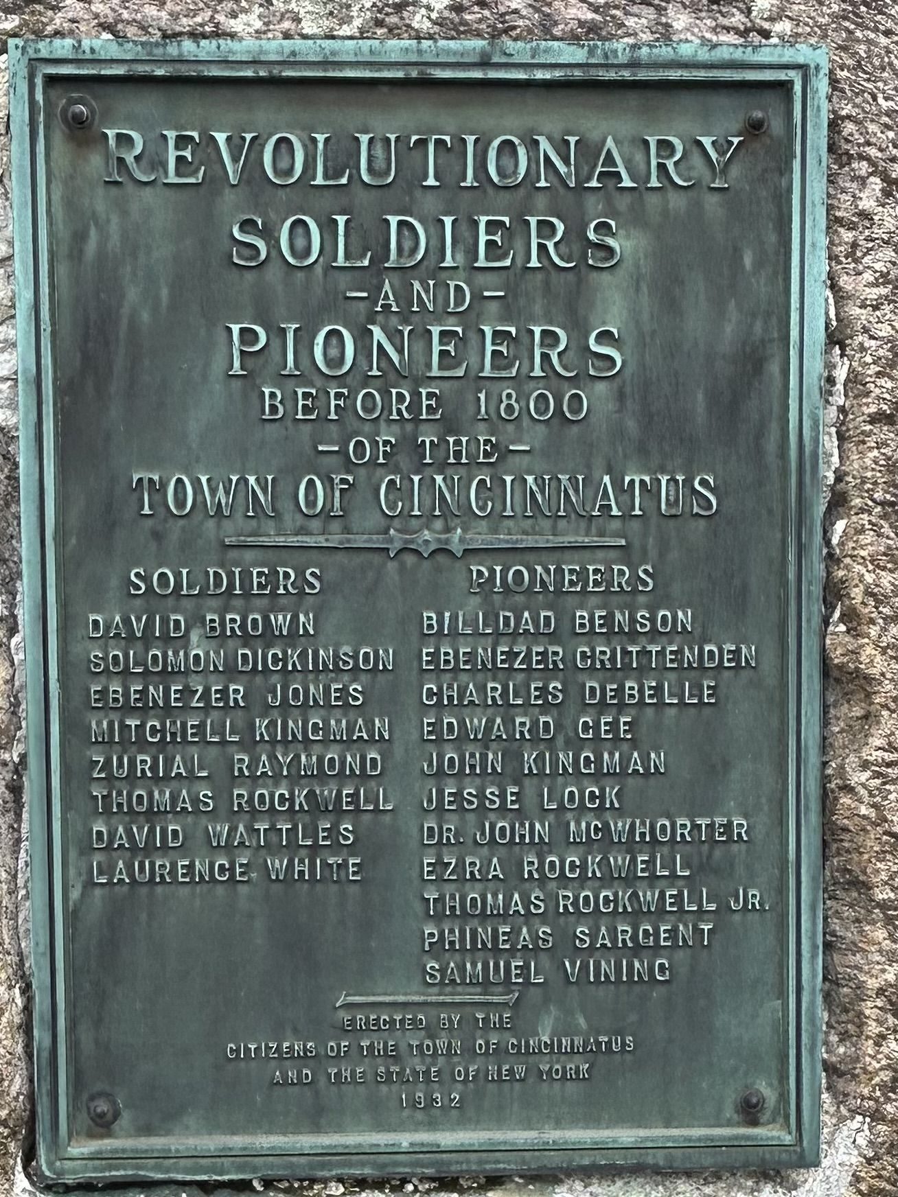 REVOLUTIONARY SOLDIERS AND PIONEERS BEFORE 1800 MEMORIAL PLAQUE