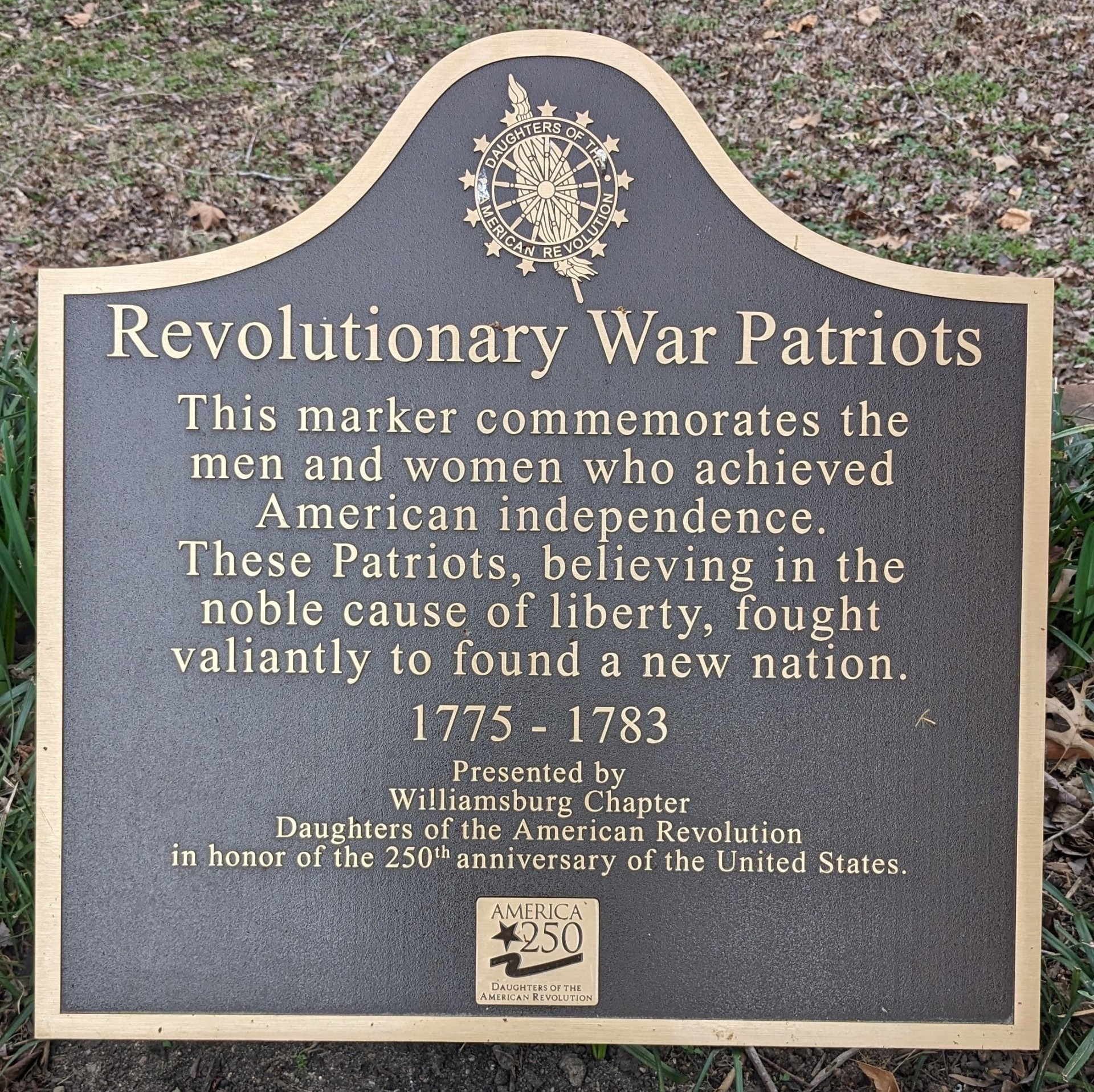 REVOLUTIONARY WAR PATRIOTS MEMORIAL MARKER WILLIAMSBURG