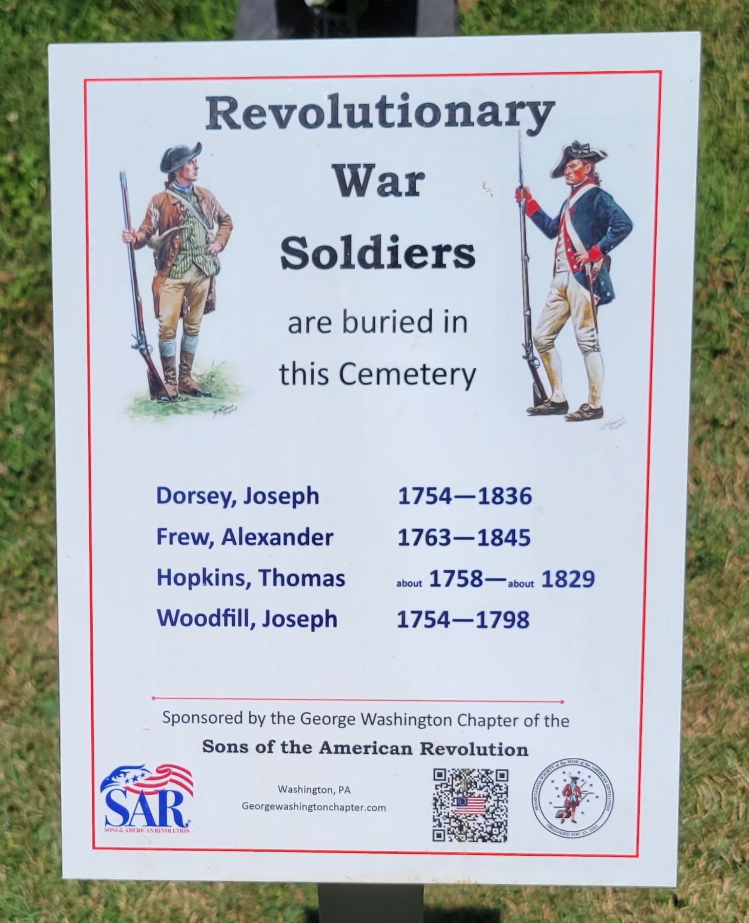 REVOLUTIONARY WAR SOLDIERS BURIED IN TAYLOR CEMETERY MEMORIAL PLAQUE