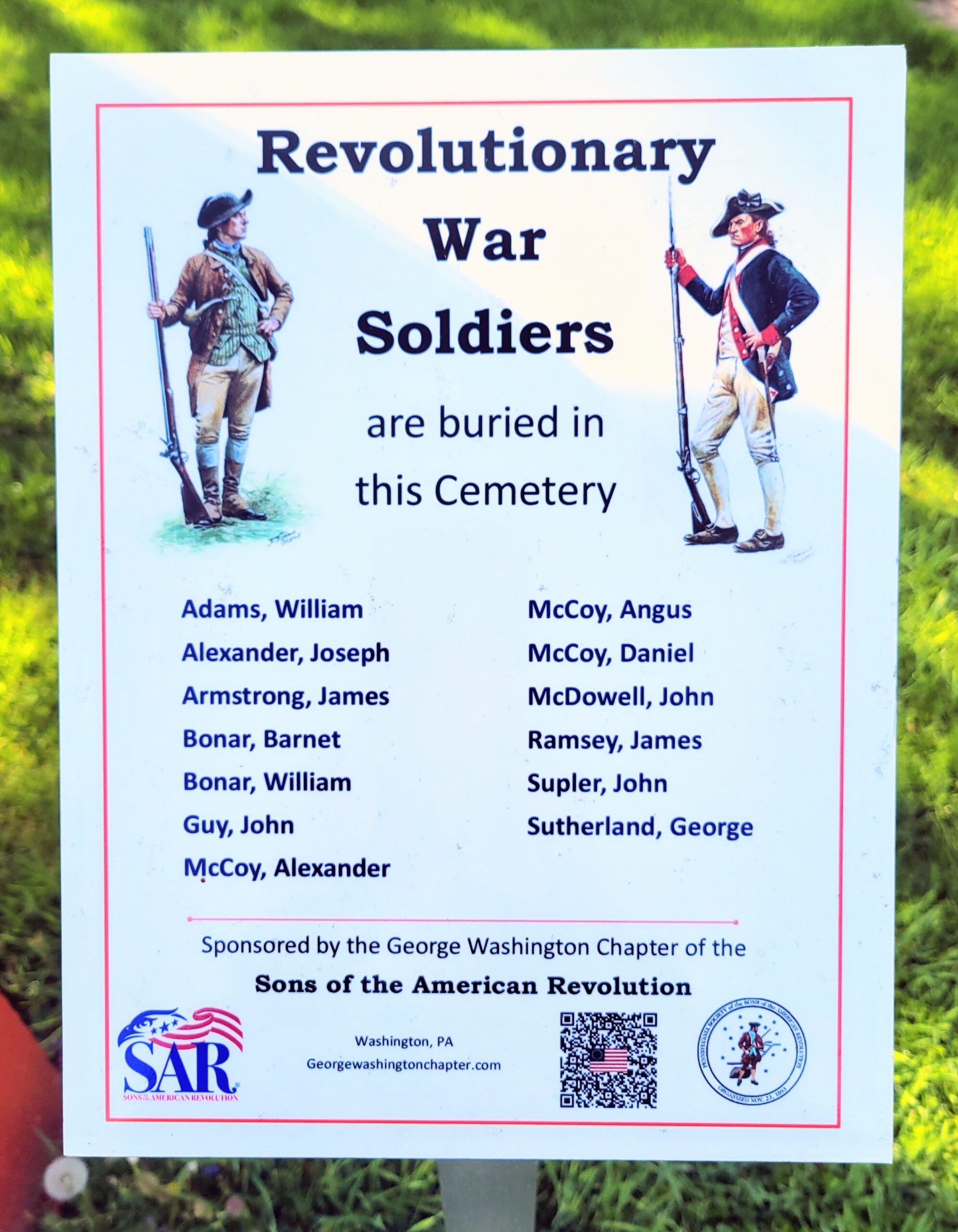REVOLUTIONARY WAR SOLDIERS BURIED IN WEST ALEXANDER PRESBYTERIAN CHURCH CEMETERY MEMORIAL PLAQUE