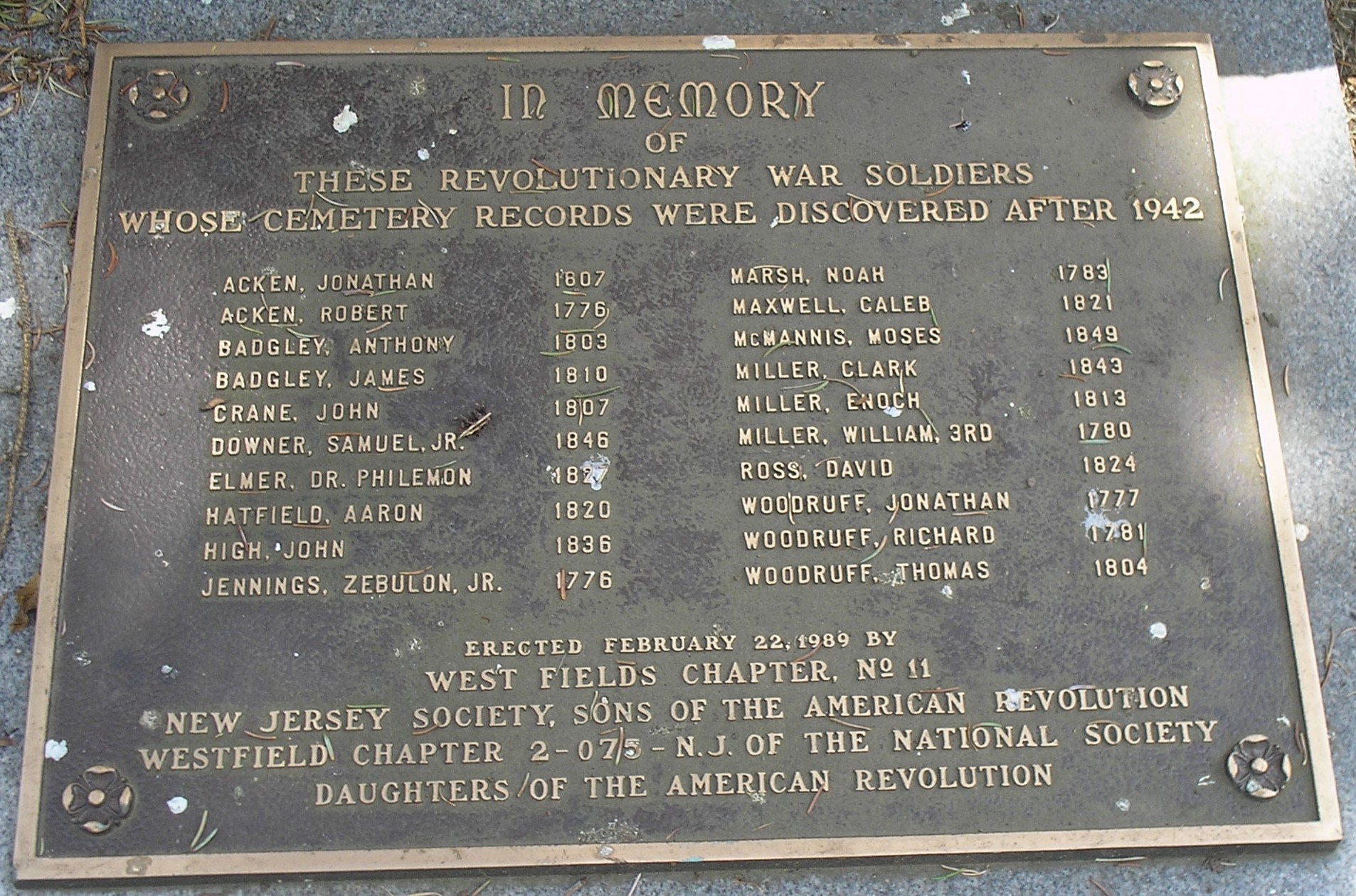REVOLUTIONARY WAR SOLDIERS IN PRESBYTERIAN CHURCH CEMETERY MEMORIAL PLAQUE B