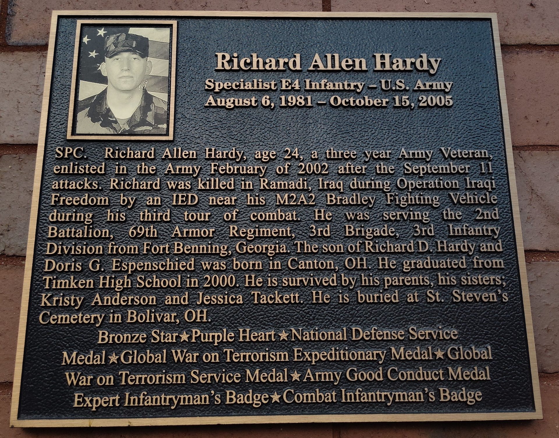 RICHARD ALLEN HARDY WAR MEMORIAL PLAQUE