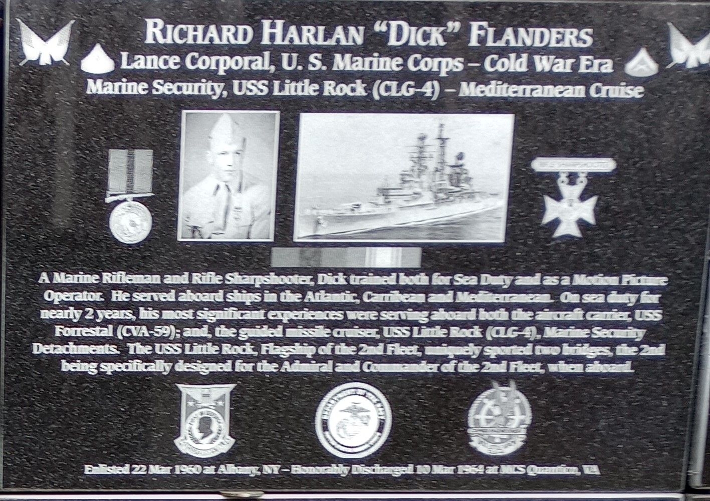 RICHARD HARLAN “DICK” FLANDERS WAR MEMORIAL PLAQUE