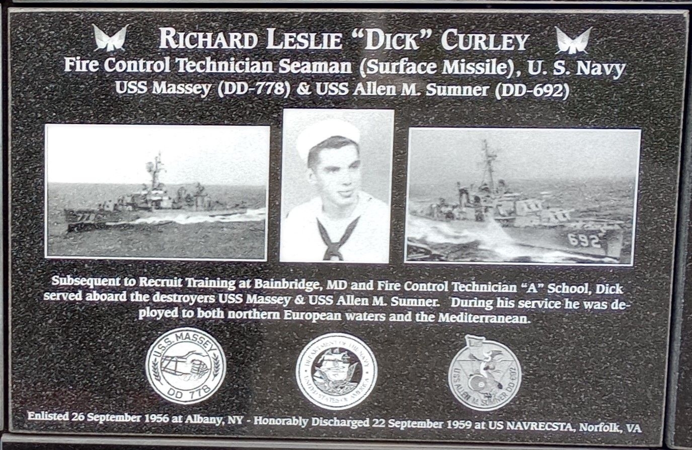 RICHARD LESLIE “DICK” CURLEY WAR MEMORIAL PLAQUE