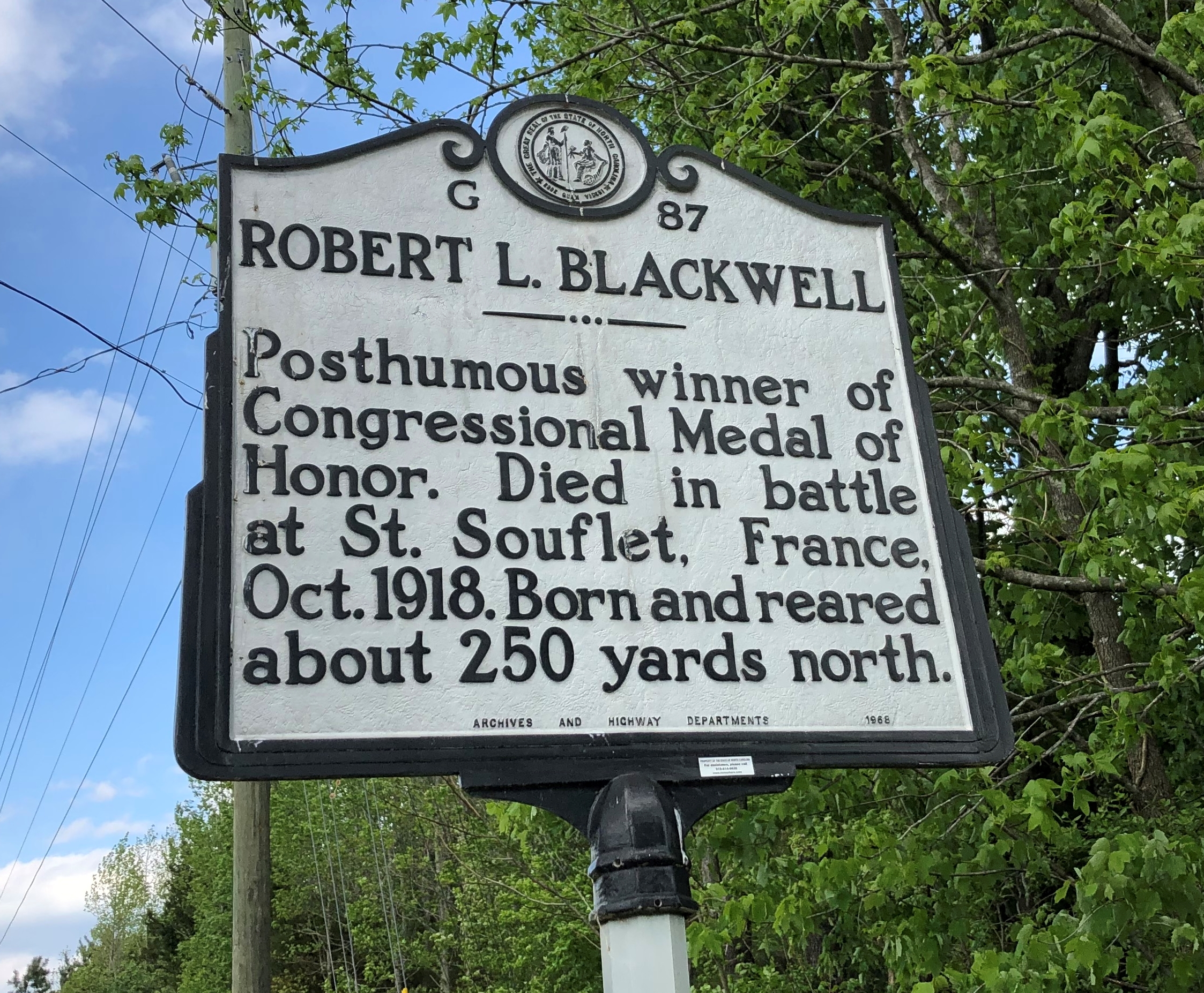 ROBERT L. BLACKWELL MEDAL OF HONOR WAR MEMORIAL MARKER
