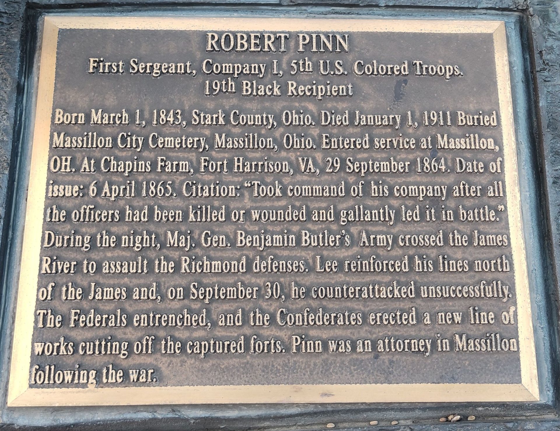 ROBERT PINN MEDAL OF HONOR WAR MEMORIAL PLAQUE