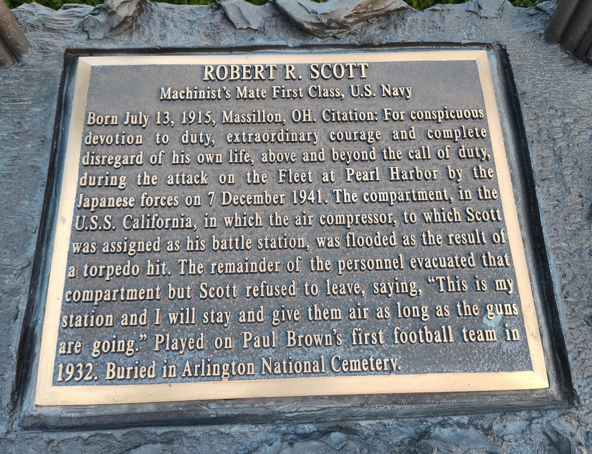 ROBERT R. SCOTT MEDAL OF HONOR WAR MEMORIAL PLAQUE