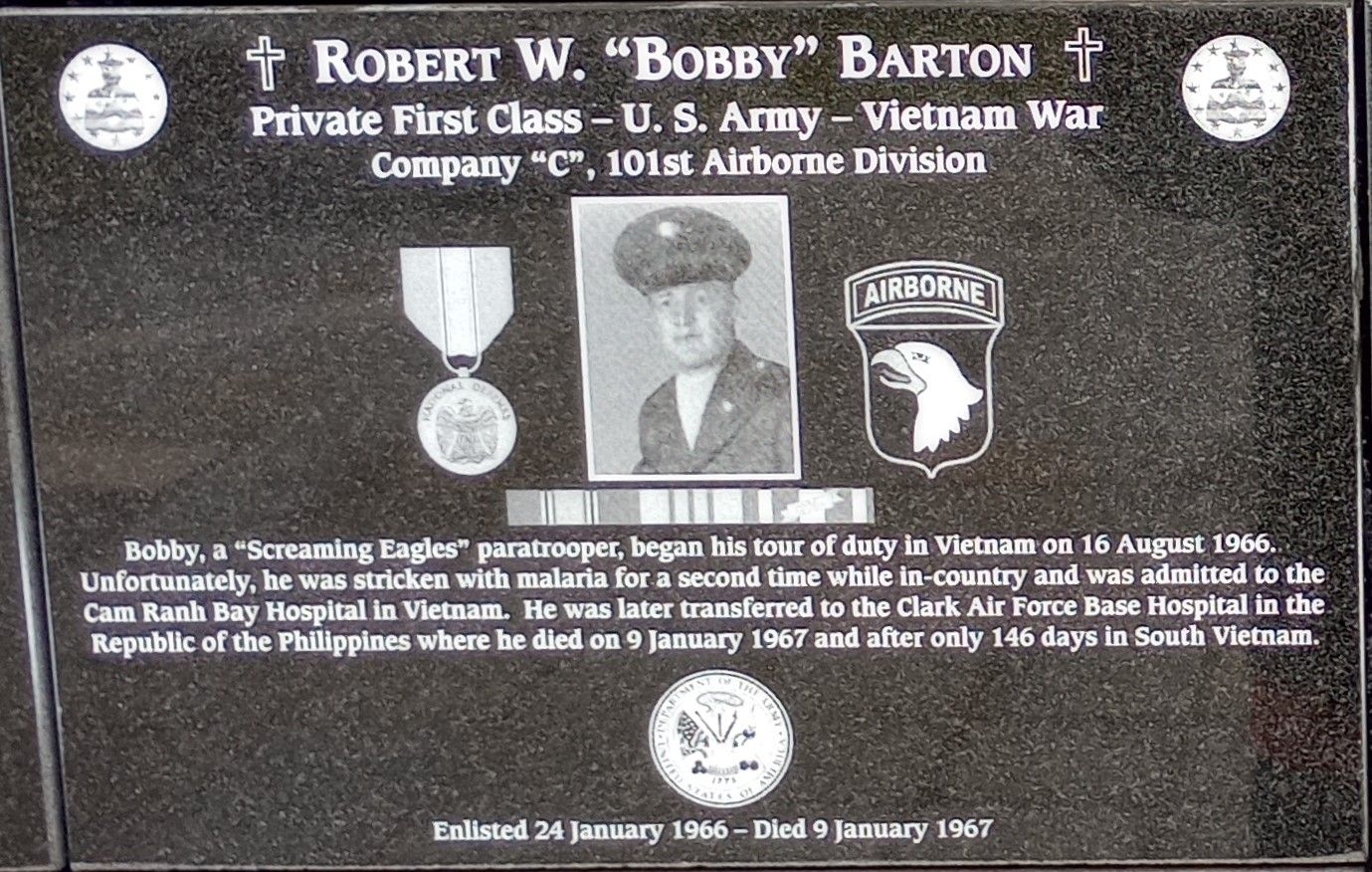 ROBERT W. BOBBY BARTON WAR MEMORIAL PLAQUE