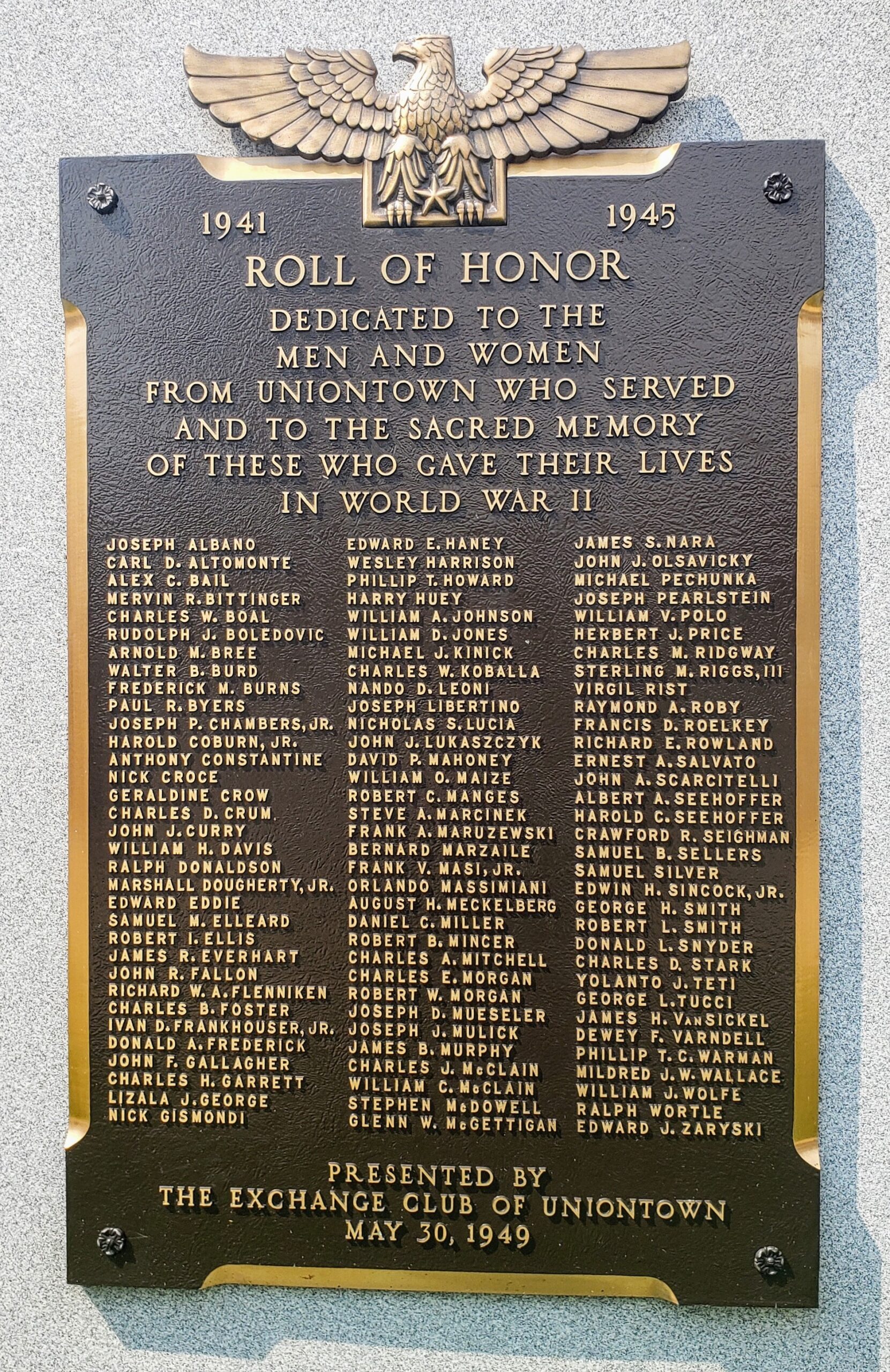 ROLL OF HONOR UNIONTOWN SUPREME SACRIFICE WAR MEMORIAL PLAQUE