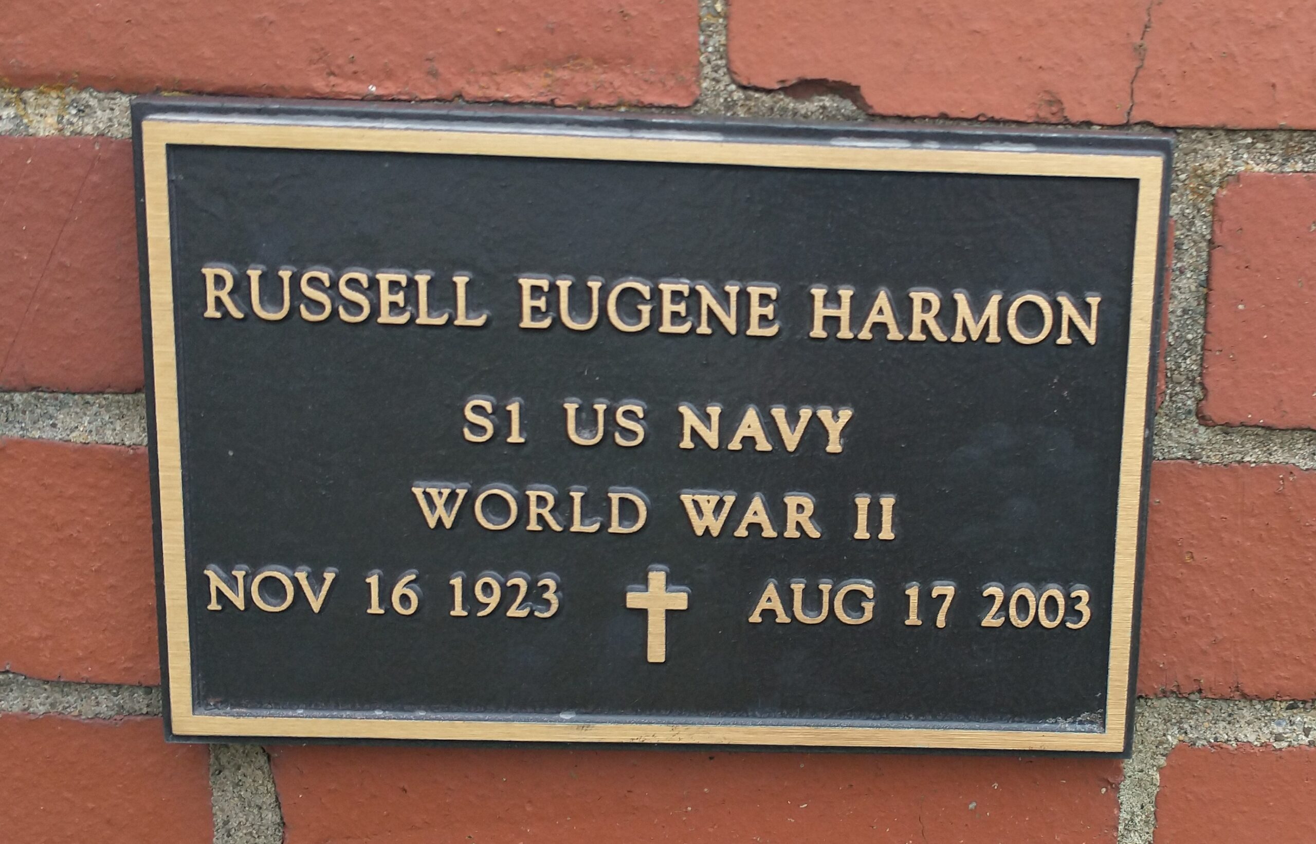 RUSSELL EUGENE HARMON WAR MEMORIAL PLAQUE