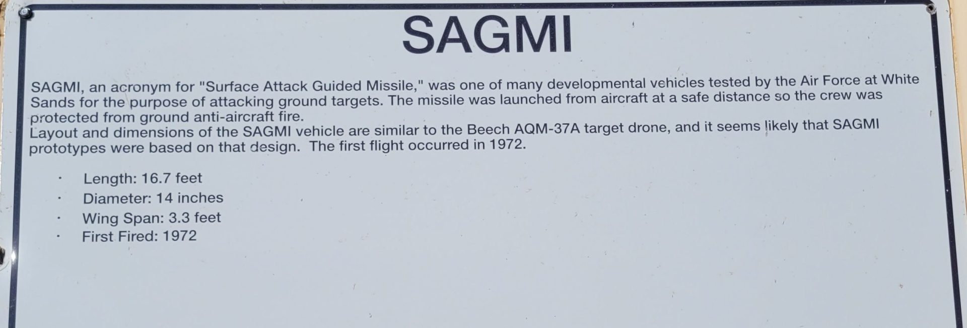 SAGMI MISSILE MEMORIAL PLAQUE