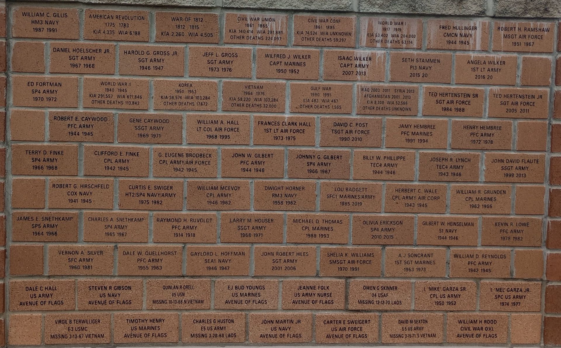 SAINT MARYS MILITARY PERSONNEL WAR MEMORIAL BRICKS F