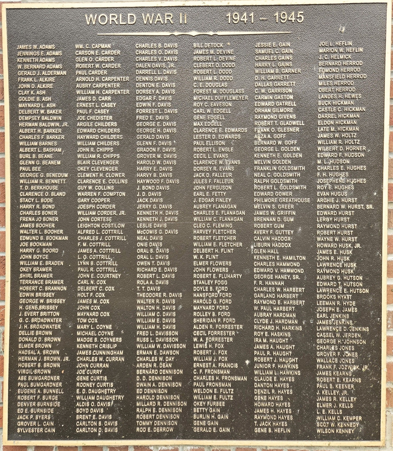 SALEM, WV WORLD WAR II MEMORIAL PLAQUE A