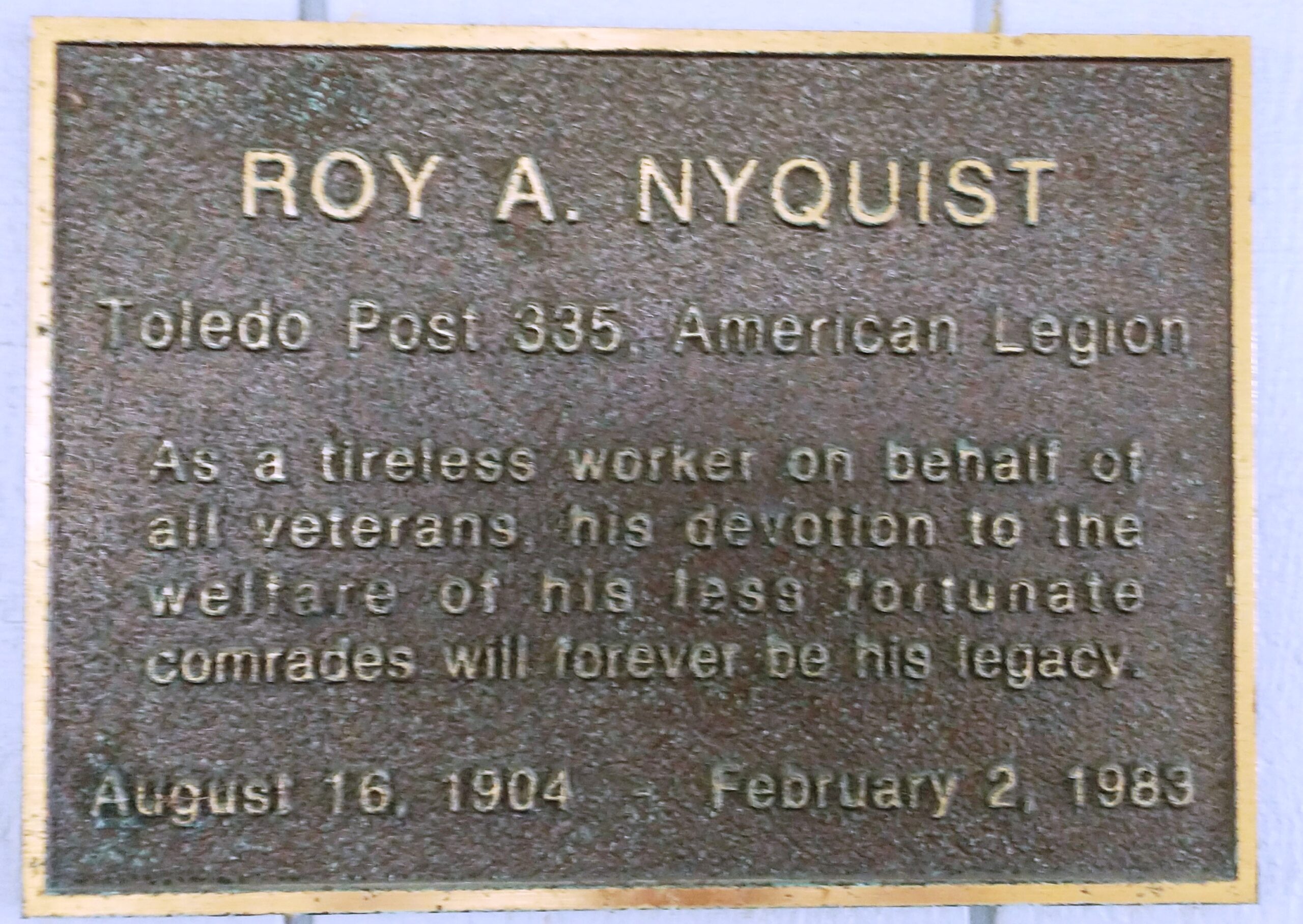 SANDUSKY VETERANS PAVILLION PLAQUE B