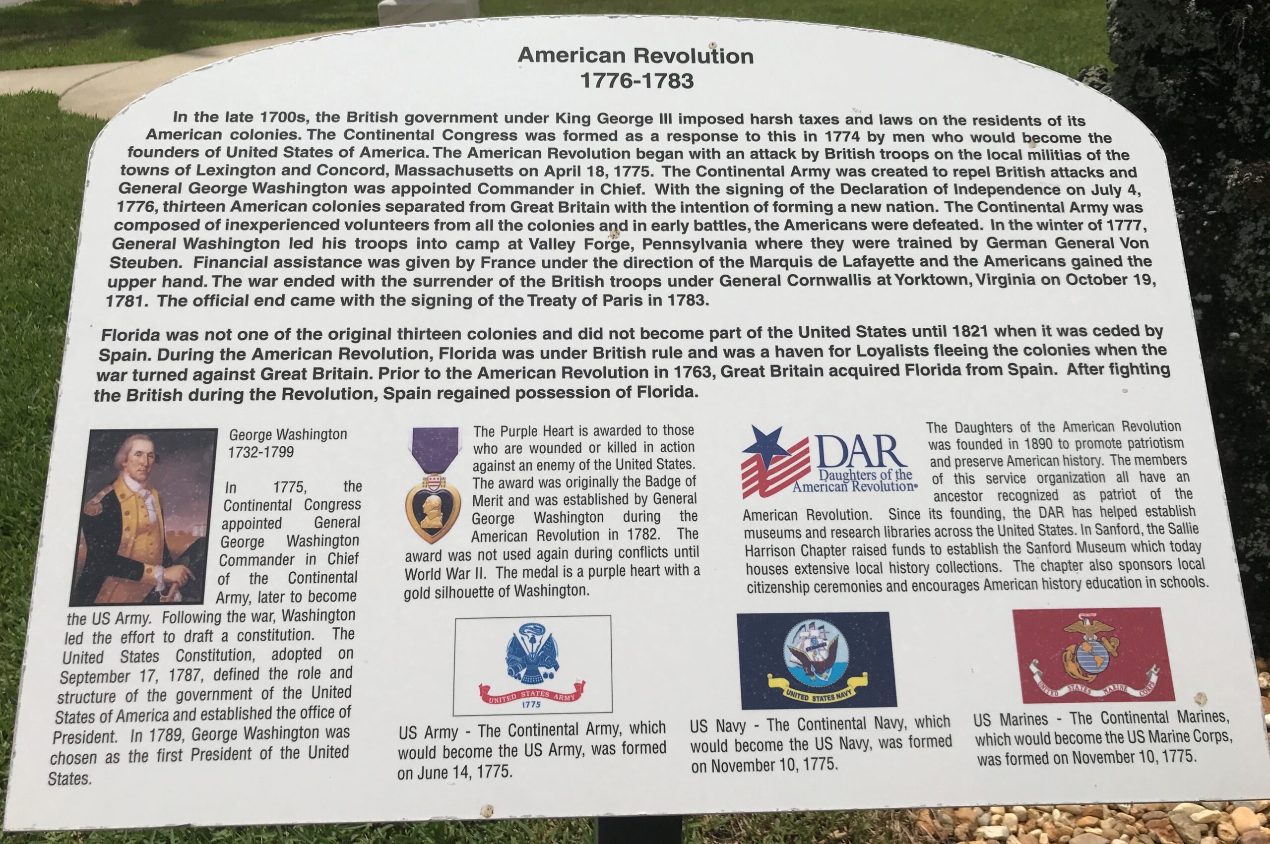 SANFORD AMERICAN REVOLUTION 1776-1783 WAR MEMORIAL