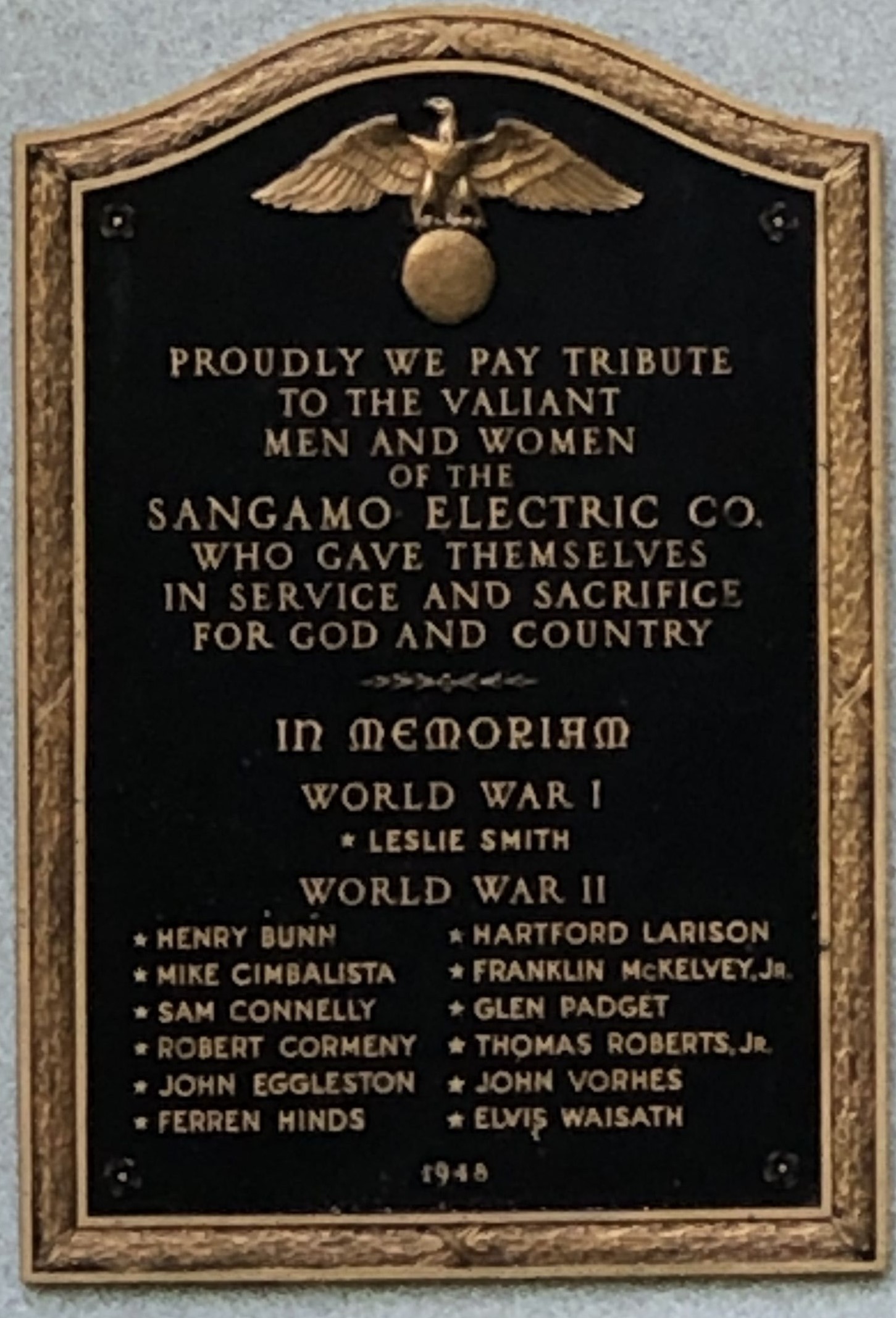 SANGAMO ELECTRIC CO. WAR MEMORIAL